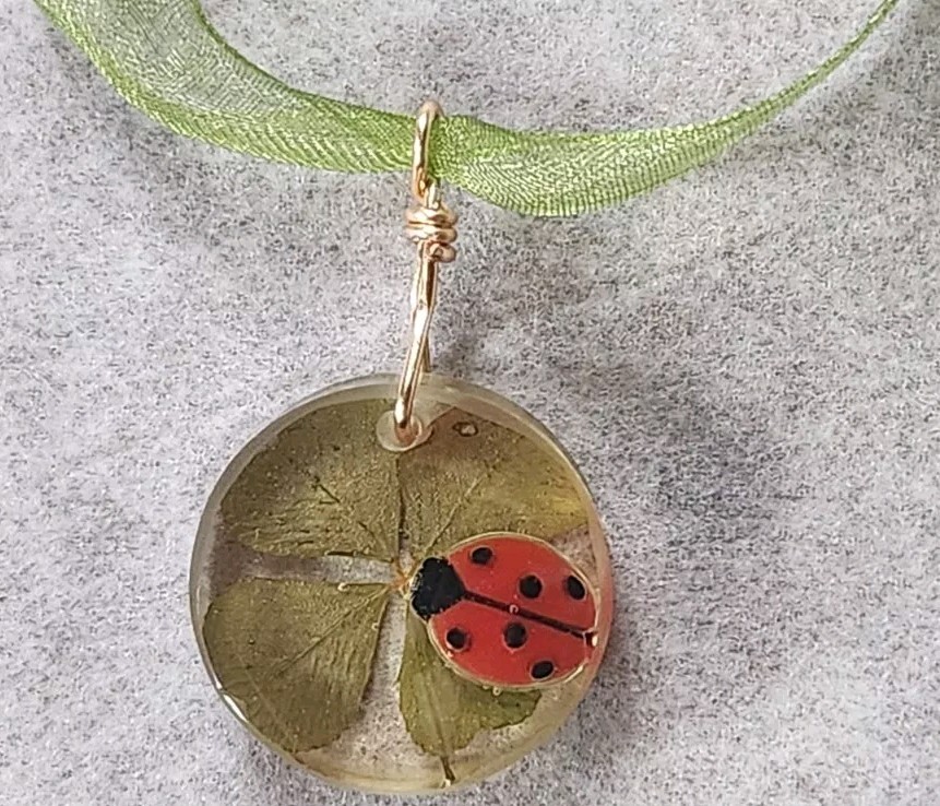 Picked naturally in wild after a the green color may fade Wire is copper and the ladybug is a vintage butyon REAL 4 LEAF CLOVER /LUCKY/ST PATRICKS DAY Clovers are found in the Pacific North West grew naturally in the wild. Since the four leaf clover is naturallygrown it is rare in shape. 4 LEAF CLOVERS REPRESENT FAITH HOPE LOVE