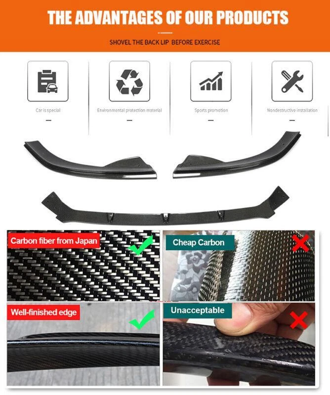 Fitment: Fit for VW Jetta MK6 GLI Sedan 4-Door 2013 2014 2015 Specifications: Product Name: Front Bumper Lip Material: Carbon Fiber Package Size: 180*65*13cm Package Weight: 4.42kg Features: • Made of High Quality Lightweight Carbon Fiber. • Does not affect the height of the car chassis. • Prevent the front of the car from scratching. • Waterproof, anti-corrosion, abrasion resistance, high temperature resistance. • Beautiful appearance design, make the car look cool and new. Package included: • Car Front Lip Bumper Body Kits with glue tape and screws Carbon Fiber Front Bumper Lip FOR VW The Front Bumper Lip is one of the simplest mods you can do to the exterior of your car that will give your car that completely different look. Not only are spoilers meant for great looks, they also help Prevent the front of the car from scratching. Fitment: Fit for VW Jetta MK6 GLI Sedan 4-Door 2013 2014 2015 Specifications: Product Name: Front Bumper Lip Material: Carbon Fiber Package Size: 180*65*13cm Package Weight: 4.42kg Features: • Made of High Quality Lightweight Carbon Fiber. • Does not affect the height of the car chassis. • Prevent the front of the car from scratching. • Waterproof, anti-corrosion, abrasion resistance, high temperature resistance. • Beautiful appearance design, make the car look cool and new. Package included: • Car Front Lip Bumper Body Kits with glue tape and screws Delivery details Payment and TAX Warranty Policy Return Policy Contact us Delivery details NOTE: The shipping fee is only for the mainland of each country, it does not include the overseas territories, such as Virgin Islands (U.S.) , Puerto Rico, Hawaii , French Reunion Island, etc. But on ebay, when buyers from Puerto Rico and overseas territories , the shipping fee is equal to United States, it is NOT correct,. please contact us for correct shipping fee, or we will cancel the order. Sorry for the inconvenience, and thanks for your cooperation. 1. Item will be shipped in 10 days, most within 2 days.usually it takes 7-30 days in transit to most countries. 2. If you want to upgrade the shipping, please contact us before making payment, we will revise the shipping fee. 3. We will ship according to your Ebay address. Please make sure it is correct and include phone number for delivery. If you have any questions , please contact us, we would do our best to serve you solve the problem. Payment and TAX 1.We accept Multiple Payment Methods Available: Credit Card, Debit Card, Gift Card, Apple Pay, Goggle Pay, PayPal and PayPal Cred. 2.Please leave note for your special request (e.g. Colors or Size) in ebay note when you pay the order. 3.Your must complete the payment within 7 days or Ebay will automatically open unpaid item case For US Buyer:The invoice value of each item is less than 800USD ,so you no need to pay any tariff . NON-US Buyer Note: Most countries are tax free based on our invoices, if tax is required, which will be buyer's responsibility. Warranty Policy We Warranty Our Product Within the Limited Warranty Policy Specified on Ebay. Please Email us if ou have any question regarding the warranty policy on a specific item. Most of the items are Aftermarket Parts and they are intended for off-road usage only, therefore no installation instruction will be included, Professional installation are Highly Recommended. We are not responsible for any damages to the item or the vehicle that occur during the installation of the item.Also, Please Make Sure Proper Installation is Performed as we are not responsible for item being missing or flew off after the installation. if you don't think the item can stay on the car properly, please do not attempt to drive the car with it and please check with professional shops/mechanics or contact us for assistance. Return Policy We Accept Returns Within the Return Period On Ebay. Return Authorization/Return Approval is Required For Every Return. So If you Wish to Make a Return On Your Purchase. Please Contact us Before You Send The item back For any damages occured to the item upon arrival, Please notify us within 5 days of the delivery so we can take proper action to fix the issue. So Please Kindly inspect and check the item condition upon arrival.For Any other Return Inquries, You can contact us within the return period to obtain return authorization/return approval. In case of return, the merchandise needs to be returned in original condition with origi- nal packaging in order to be eligible for an exchange or a refund. Items must be not opened in their original package. Any mark of installation, mounting, cutting, scratch or using will not be allowed. Contact us 1.We are trying our best to explain all details of the products here! If you have any question, please feel free to contact us by Ebay message, and We will get back to you within 24-48 hours. 2.Customer satisfaction is our NO.1 priority. If you are not happy with the item that you purchase, please contact us first. We will try our best to solve the problem with you.Please leave us a positive feedback if you receive the item.Please do not leave negative or neutral feedback without any contact.If you haven't received item in 30 days, please contact us and we will arrange refund.We appreciate your business.Happy Bidding & Have a nice day! 3.Working hours: From 8 a.m. to 6 p.m. from Monday to Friday. From 8 a.m. to 12 a.m. on Saturday morning Holiday/Rest time: Saturday afternoon and Sunday