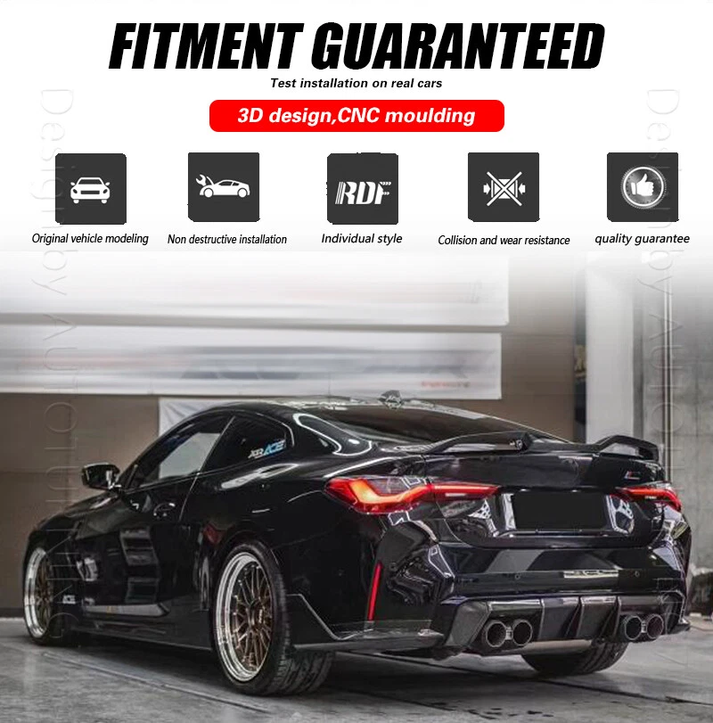 Fitment: Fit for BMW 4 Series G22 430i 430i xDrive M440i M440i xDrive G82 M4 2021 2022 2023 Specifications: Product Name: Rear Spoiler Material: Carbon Fiber Features: Made of High Quality Lightweight Carbon Fiber. Latest Design GT Wing Spoiler Completed Kit, Improve Handling And Make Tail More Stable in High Speed. Water Transfer Carbon Fiber for Highest Durability and Appearances. Adjustable Angles for Customizable Usages and Efficiencies, Enhances Aerodynamic. Reduces Drag, Increases Fuel Efficiency, Reinforces Downforce, Traction and Stability. Double-sided adhesive paste, Easy to Install. Package included: 1 x Spoiler with self-adhesive glue tape Carbon Fiber Spoiler FOR BMW The Rear Trunk Spoiler is one of the simplest mods you can do to the exterior of your car that will give your car that completely different look. Not only are spoilers meant for great looks, they also help with the aero dynamics of the car by lowering drag, or helping to put more downforce on the car making sure that the wheels stay grounded for maximum traction. Fitment: Fit for BMW 4 Series G22 430i 430i xDrive M440i M440i xDrive G82 M4 2021 2022 2023 Specifications: Product Name: Rear Spoiler Material: Carbon Fiber Features: Made of High Quality Lightweight Carbon Fiber. Latest Design GT Wing Spoiler Completed Kit, Improve Handling And Make Tail More Stable in High Speed. Water Transfer Carbon Fiber for Highest Durability and Appearances. Adjustable Angles for Customizable Usages and Efficiencies, Enhances Aerodynamic. Reduces Drag, Increases Fuel Efficiency, Reinforces Downforce, Traction and Stability. Double-sided adhesive paste, Easy to Install. Package included: 1 x Spoiler with self-adhesive glue tape Delivery details Payment and TAX Warranty Policy Return Policy Contact us Delivery details NOTE: The shipping fee is only for the mainland of each country, it does not include the overseas territories, such as Virgin Islands (U.S.) , Puerto Rico, Hawaii , French Reunion Island, etc. But on ebay, when buyers from Puerto Rico and overseas territories , the shipping fee is equal to United States, it is NOT correct,. please contact us for correct shipping fee, or we will cancel the order. Sorry for the inconvenience, and thanks for your cooperation. 1. If you want to upgrade the shipping, please contact us before making payment, we will revise the shipping fee. 2. We will ship according to your Ebay address. Please make sure it is correct and include phone number for delivery. If you want to know the exact shipping time , please contact us . Payment and TAX 1.We accept Multiple Payment Methods Available: Credit Card, Debit Card, Gift Card, Apple Pay, Goggle Pay, PayPal and PayPal Cred. 2.Please leave note for your special request (e.g. Colors or Size) in ebay note when you pay the order. 3.Your must complete the payment within 7 days or Ebay will automatically open unpaid item case For US Buyer:The invoice value of each item is less than 800USD ,so you no need to pay any tariff . NON-US Buyer Note: Most countries are tax free based on our invoices, if tax is required, which will be buyer's responsibility. Warranty Policy We Warranty Our Product Within the Limited Warranty Policy Specified on Ebay. Please Email us if ou have any question regarding the warranty policy on a specific item. Most of the items are Aftermarket Parts and they are intended for off-road usage only, therefore no installation instruction will be included, Professional installation are Highly Recommended. We are not responsible for any damages to the item or the vehicle that occur during the installation of the item.Also, Please Make Sure Proper Installation is Performed as we are not responsible for item being missing or flew off after the installation. if you don't think the item can stay on the car properly, please do not attempt to drive the car with it and please check with professional shops/mechanics or contact us for assistance. Return Policy We Accept Returns Within the Return Period On Ebay. Return Authorization/Return Approval is Required For Every Return. So If you Wish to Make a Return On Your Purchase. Please Contact us Before You Send The item back For any damages occured to the item upon arrival, Please notify us within 5 days of the delivery so we can take proper action to fix the issue. So Please Kindly inspect and check the item condition upon arrival.For Any other Return Inquries, You can contact us within the return period to obtain return authorization/return approval. In case of return, the merchandise needs to be returned in original condition with origi- nal packaging in order to be eligible for an exchange or a refund. Items must be not opened in their original package. Any mark of installation, mounting, cutting, scratch or using will not be allowed. Contact us 1.We are trying our best to explain all details of the products here! If you have any question, please feel free to contact us by Ebay message, and We will get back to you within 24-48 hours. 2.Customer satisfaction is our NO.1 priority. If you are not happy with the item that you purchase, please contact us first. We will try our best to solve the problem with you.Please leave us a positive feedback if you receive the item.Please do not leave negative or neutral feedback without any contact.If you haven't received item in 30 days, please contact us and we will arrange refund.We appreciate your business.Happy Bidding & Have a nice day! 3.Working hours: From 8 a.m. to 6 p.m. from Monday to Friday. From 8 a.m. to 12 a.m. on Saturday morning Holiday/Rest time: Saturday afternoon and Sunday