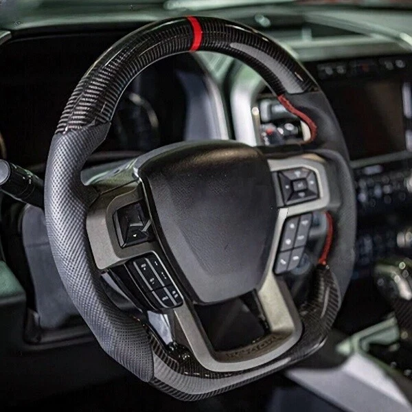 Specification: Condition: 100% Brand New Item Type: Carbon Fiber Steering Wheel Material: Real Carbon Fiber + Pref orated Leather Color: As Picture Shown Stitching: Red 12 O'Clock Stripe: Red Shape: Flat bottom D-type Racing Design Finger Grips: Yes Thumb Grips: No Paddle Cutouts: (When you place the order plz let me know if your steering wheel have paddles or not) Heated: Yes Vibration: No (If you want to keep this function, please contact us) Warranty: 1 Year Fitment: 2015-2020 Ford F150 Raptor (If you are not sure whether your model matches, please provide your steering wheel photo for us to confirm.) Package List: 1 x Carbon Fiber Steering Wheel 1 x Installation Instruction Note: This steering whe el purchses will not include trims, buttons, paddle shifter and wire harness on the steering wheel. Shipping: This is BUILD TO ORDER item that required 1 5 days , b ut we try our best to ship out your order after your payment ASAP. Return Policy: ①Remember to check your package prior to signing for delivery! If the box looks damaged, refuse the package and contact us immediately. ②If you receive a defective or damaged item,or an incorrect item please contact us immediately with the picture,We need pictures of the damaged item and of the box it came in before sending out your replacement or refund. ③In the case of the above, all our products come with a 30-Day Free Return Policy ④Refunds will not be issued due to poor installation or the customer's inability to install the part themselves. ⑤Since our items are heavy items, we do not provide return labels. If you need to return, please arrange the return by yourself, and we will arrange the return of the shipping fee after receiving the item. On Oct 11, 2024 at 14:07:23 PDT, seller added the following information: