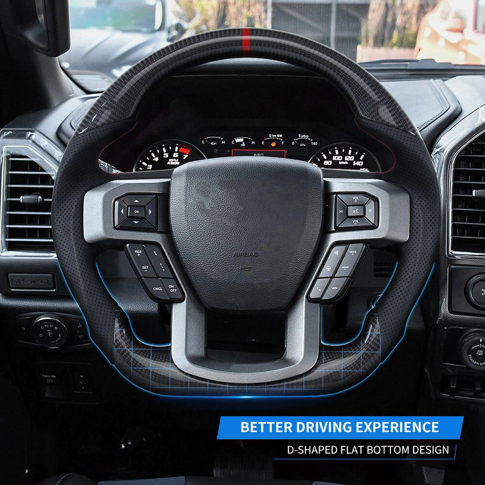 Specification: Condition: 100% Brand New Item Type: Carbon Fiber Steering Wheel Material: Real Carbon Fiber + Pref orated Leather Color: As Picture Shown Stitching: Red 12 O'Clock Stripe: Red Shape: Flat bottom D-type Racing Design Finger Grips: Yes Thumb Grips: No Paddle Cutouts: NO Heated: No Vibration: No (If you want to keep this function, please contact us) Warranty: 1 Year Fitment: Ford F150 Raptor 2015-2020 (If you are not sure whether your model matches, please provide your steering wheel photo for us to confirm.) Package List: 1 x Carbon Fiber Steering Wheel Note: This steering whe el purchses will not include trims, buttons, paddle shifter and wire harness on the steering wheel. Shipping: This is BUILD TO ORDER item that required 1 5 days , b ut we try our best to ship out your order after your payment ASAP. If your address is a remote address, please inform us in advance, remote areas are subject to an additional charge of US $60 . Return Policy: ①Remember to check your package prior to signing for delivery! If the box looks damaged, refuse the package and contact us immediately. ②If you receive a defective or damaged item,or an incorrect item please contact us immediately with the picture,We need pictures of the damaged item and of the box it came in before sending out your replacement or refund. ③In the case of the above, all our products come with a 30-Day Free Return Policy ④Refunds will not be issued due to poor installation or the customer's inability to install the part themselves. ⑤Since our items are heavy items, we do not provide return labels. If you need to return, please arrange the return by yourself, and we will arrange the return of the shipping fee after receiving the item.