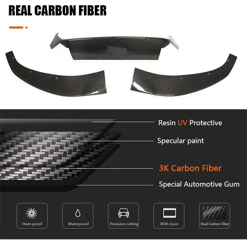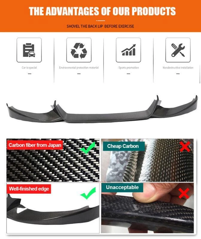 Fitment: Fit for BMW 5 Series G30 520i 530i 540i 550i Base Sedan 2017 2018 2019, not for G30 M Sport & M5 Models Specifications: Product Name: Front Bumper Lip Material: Carbon Fiber Package Size: 99*33.3kg Features: • Made of High Quality Lightweight Real Carbon Fiber. • Does not affect the height of the car chassis. • Prevent the front of the car from scratching. • Waterproof, anti-corrosion, abrasion resistance, high temperature resistance. • Beautiful appearance design, make the car look cool and new. Package included: • Car Front Lip Bumper Body Kits with self-adhesive glue tape and screws. Carbon Fiber Front Bumper Lip FOR BMW The Front Bumper Lip is one of the simplest mods you can do to the exterior of your car that will give your car that completely different look. Not only are spoilers meant for great looks, they also help Prevent the front of the car from scratching. Fitment: Fit for BMW 5 Series G30 520i 530i 540i 550i Base Sedan 2017 2018 2019, not for G30 M Sport & M5 Models Specifications: Product Name: Front Bumper Lip Material: Carbon Fiber Package Size: 99*33.3 kg Features: • Made of High Quality Lightweight Real Carbon Fiber. • Does not affect the height of the car chassis. • Prevent the front of the car from scratching. • Waterproof, anti-corrosion, abrasion resistance, high temperature resistance. • Beautiful appearance design, make the car look cool and new. Package included: • Car Front Lip Bumper Body Kits with self-adhesive glue tape and screws. Delivery details Payment and TAX Warranty Policy Return Policy Contact us Delivery details NOTE: The shipping fee is only for the mainland of each country, it does not include the overseas territories, such as Virgin Islands (U.S.) , Puerto Rico, Hawaii , French Reunion Island, etc. But on ebay, when buyers from Puerto Rico and overseas territories , the shipping fee is equal to United States, it is NOT correct,. please contact us for correct shipping fee, or we will cancel the order. Sorry for the inconvenience, and thanks for your cooperation. 1. Item will be shipped in 10 days, most within 2 days.usually it takes 7-30 days in transit to most countries. 2. If you want to upgrade the shipping, please contact us before making payment, we will revise the shipping fee. 3. We will ship according to your Ebay address. Please make sure it is correct and include phone number for delivery. If you have any questions , please contact us, we would do our best to serve you solve the problem. Payment and TAX 1.We accept Multiple Payment Methods Available: Credit Card, Debit Card, Gift Card, Apple Pay, Goggle Pay, PayPal and PayPal Cred. 2.Please leave note for your special request (e.g. Colors or Size) in ebay note when you pay the order. 3.Your must complete the payment within 7 days or Ebay will automatically open unpaid item case For US Buyer:The invoice value of each item is less than 800USD ,so you no need to pay any tariff . NON-US Buyer Note: Most countries are tax free based on our invoices, if tax is required, which will be buyer's responsibility. Warranty Policy We Warranty Our Product Within the Limited Warranty Policy Specified on Ebay. Please Email us if ou have any question regarding the warranty policy on a specific item. Most of the items are Aftermarket Parts and they are intended for off-road usage only, therefore no installation instruction will be included, Professional installation are Highly Recommended. We are not responsible for any damages to the item or the vehicle that occur during the installation of the item.Also, Please Make Sure Proper Installation is Performed as we are not responsible for item being missing or flew off after the installation. if you don't think the item can stay on the car properly, please do not attempt to drive the car with it and please check with professional shops/mechanics or contact us for assistance. Return Policy We Accept Returns Within the Return Period On Ebay. Return Authorization/Return Approval is Required For Every Return. So If you Wish to Make a Return On Your Purchase. Please Contact us Before You Send The item back For any damages occured to the item upon arrival, Please notify us within 5 days of the delivery so we can take proper action to fix the issue. So Please Kindly inspect and check the item condition upon arrival.For Any other Return Inquries, You can contact us within the return period to obtain return authorization/return approval. In case of return, the merchandise needs to be returned in original condition with origi- nal packaging in order to be eligible for an exchange or a refund. Items must be not opened in their original package. Any mark of installation, mounting, cutting, scratch or using will not be allowed. Contact us 1.We are trying our best to explain all details of the products here! If you have any question, please feel free to contact us by Ebay message, and We will get back to you within 24-48 hours. 2.Customer satisfaction is our NO.1 priority. If you are not happy with the item that you purchase, please contact us first. We will try our best to solve the problem with you.Please leave us a positive feedback if you receive the item.Please do not leave negative or neutral feedback without any contact.If you haven't received item in 30 days, please contact us and we will arrange refund.We appreciate your business.Happy Bidding & Have a nice day! 3.Working hours: From 8 a.m. to 6 p.m. from Monday to Friday. From 8 a.m. to 12 a.m. on Saturday morning Holiday/Rest time: Saturday afternoon and Sunday