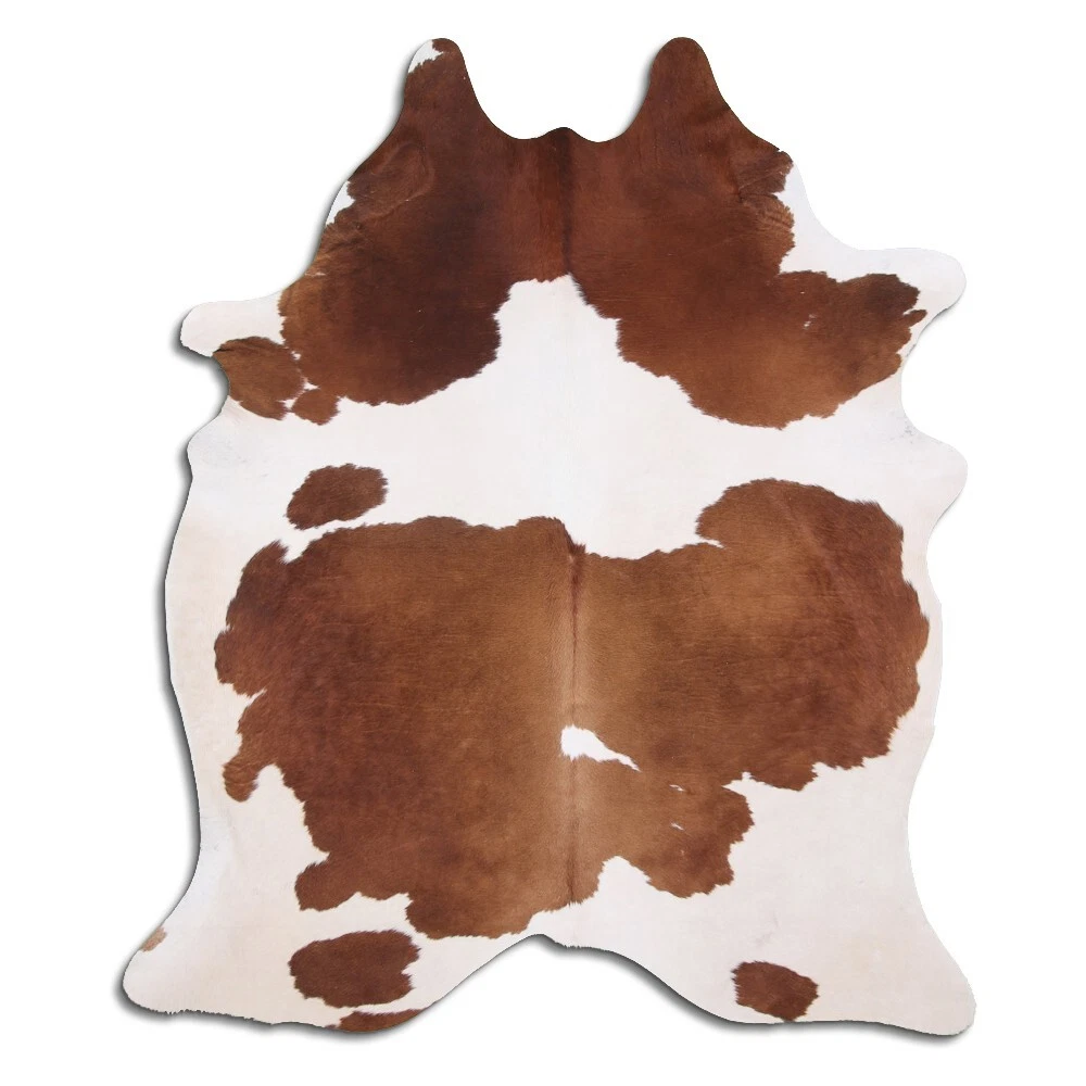 Real Cowhide Rug Brown and White Size 6 by 7 ft, Top Quality, Large Size