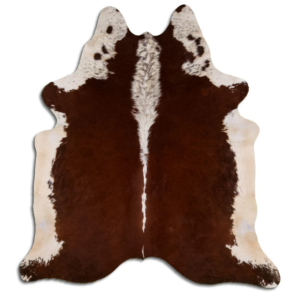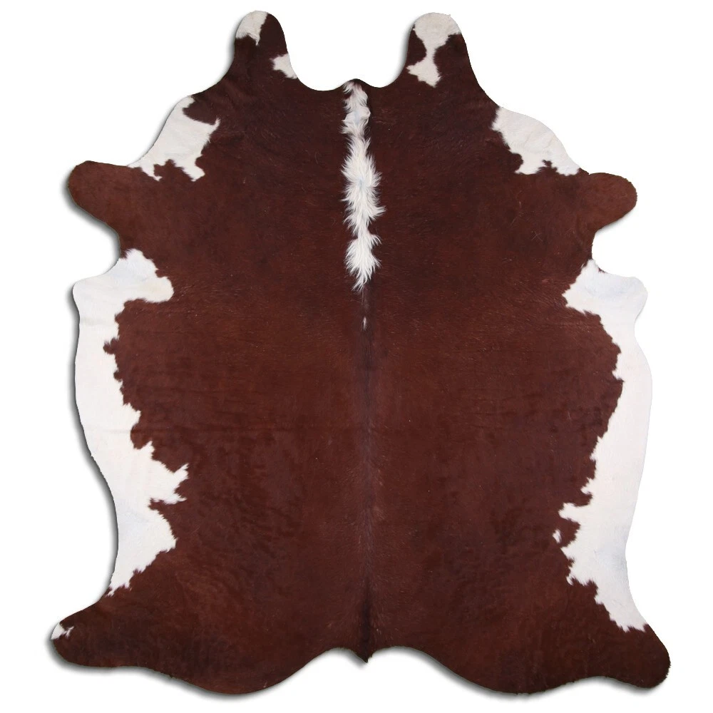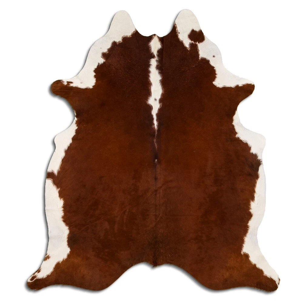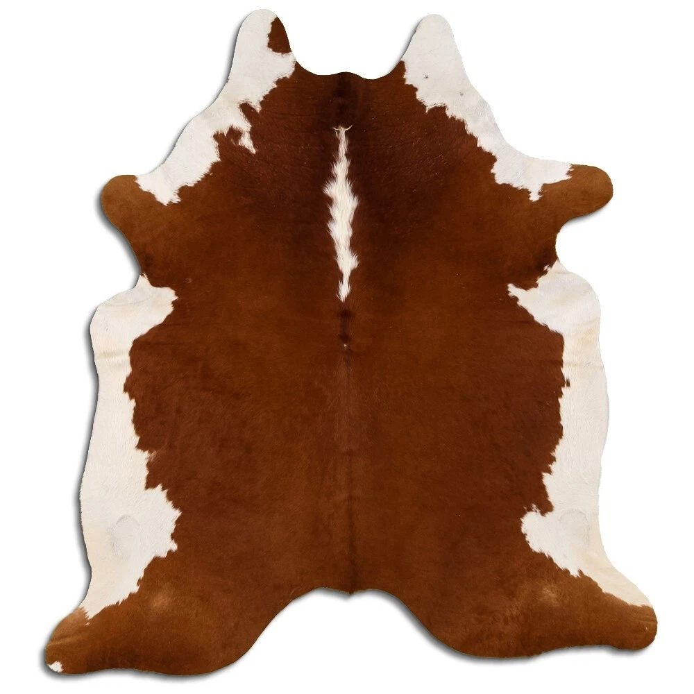 Real Cowhide Rug Hereford Brown-White Size 6 by 7 ft, Top Quality, Large Size