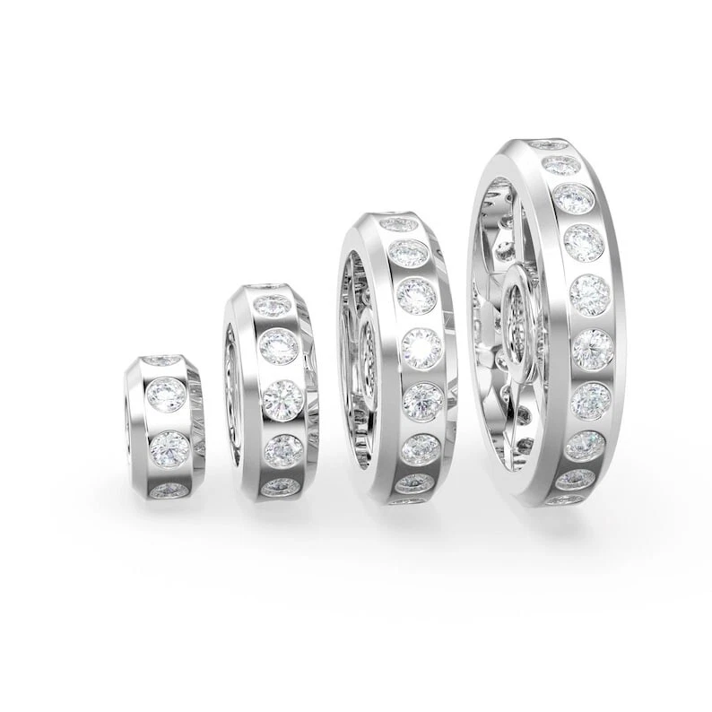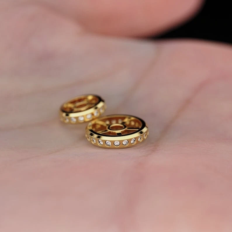 18K solid yellow gold eternity spacers with clean crisp brilliant cut real diamonds, opulent findings for you high-end gold jewelry! Size and details mentioned below: 4mm - 2mm hole size - 1mm 8pcs - 14k 0.17gms - 18k 0.21gms 6mm - 2mm hole size - 1mm 13pcs - 14k 0.40gms - 18k 0.45gms 8mm - 2mm hole size - 1mm 18pcs - 14k 0.55gms - 18k 0.65gms 10mm - 2mm hole size - 1mm 23pcs - 14k 0.75gms - 18k 0.90gms MATERIAL: Solid Gold, Genuine Natural Diamond * Please note that Gold orders are made to order in your choice of Gold KT / Color & Beads drilled to choice so please look at handling time carefully before placing orders.
