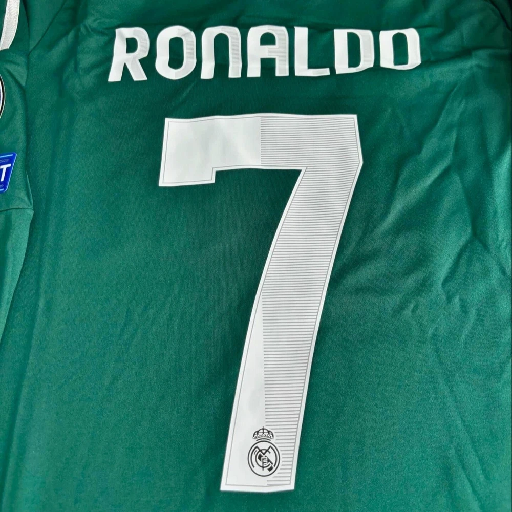 About: Relive a legendary era of football with this stunning 2012-13 third jersey, famously worn during a thrilling season of European competition. This striking ivy green garment features elegant silver accents and a subtle pinstripe design that exudes class and prestige. Designed for comfort and style, the long-sleeved construction provides extra coverage, while the specialized moisture-wicking materials ensure you stay cool whether you’re on the pitch or displaying it in your collection. This piece is a true collector's item, commemorating the club's 110-year anniversary with special internal neck detailing. The jersey comes complete with the iconic number 7 and name of a global superstar, along with prestigious continental tournament patches on the sleeves. Perfect for holiday gifting or adding to a dedicated fan's archive, this classic piece of fan apparel captures the nostalgia of the early 2010s. Bring home a piece of sports history and showcase your passion for the beautiful game with this standout collectible. Details: Condition : Brand new with tags Style : Fan version Football shirt Details : Stitched team crest and logo / Player name and number are pressed Size : Unisex adults - Loose fit Shipping: Free shipping worldwide Processing within 2 business days Get it delivered within 5-10 Business days. Tax free: All taxes are covered, what you see at checkout is the final price you pay. Returns: We got you covered, Simply reach out to us within 30 days of delivery for a smooth solution. Take care of your jersey: Wash: Inside out, cold water (30°C max), and a delicate cycle. Detergent: Mild liquid only; no fabric softener or bleach. Dry: Air dry only on a hanger. Never use a dryer. Iron: Steamer only, or iron inside out on the lowest heat with a towel barrier. Storage: Hang it up to avoid creasing the logos/printing.