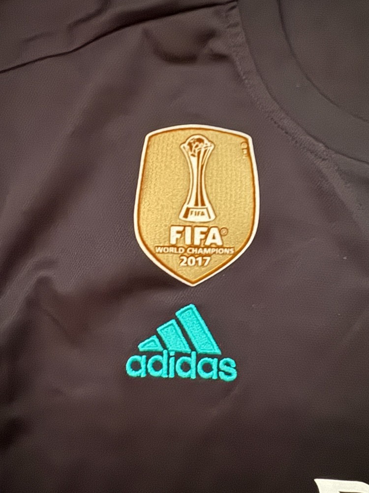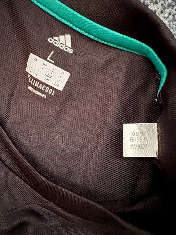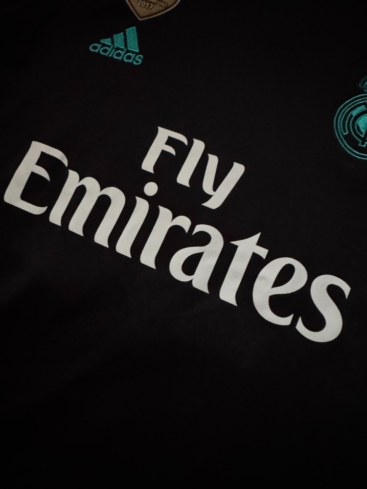 Real Madrid 2017/18 away shirt in very good condition Iconic football shirt worn in the 2017/18 season when Real Madrid won the champions league for the third time in a row. • Size L • 100% original/authentic (see product code in photos) • Condition 9.5/10 • Sponsor and player print is perfect • Club world cup winners patch