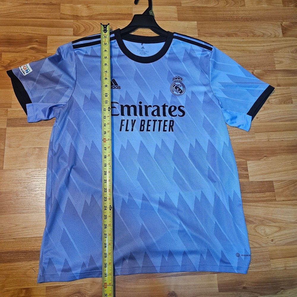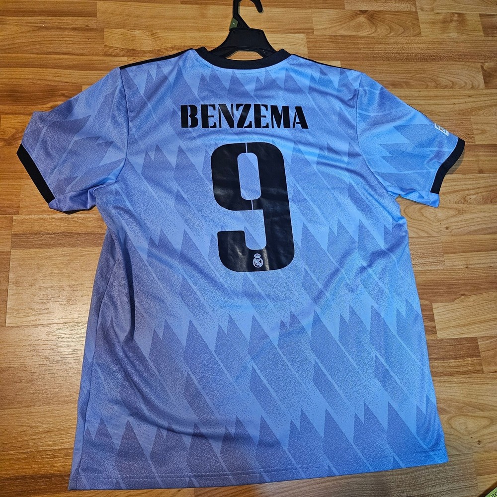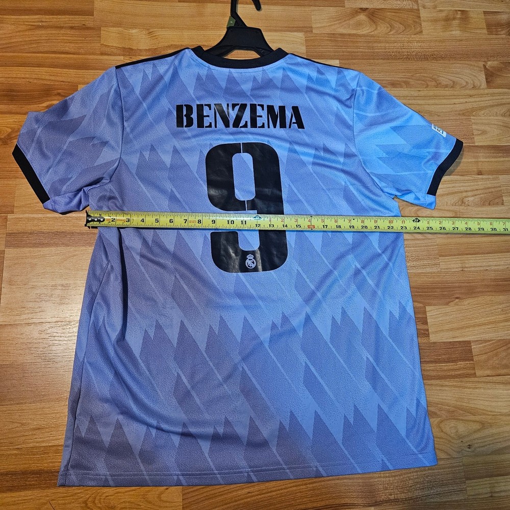 Show your support for Real Madrid with this stunning Away Football Soccer Jersey. The jersey features the iconic number 9 and the name Benzema in honor of one of the team's top players. It is made with high-quality materials and designed for comfort, making it perfect for wearing during games or casual outings. The jersey is available in size XL and comes in a beautiful shade of purple. This is a must-have for any Real Madrid fan or soccer enthusiast. It is officially licensed and perfect for showing your love for the team. Get your hands on this exclusive jersey today and join the ranks of dedicated fans who have made it a popular item in the Sports Mem, Cards & Fan Shop category.