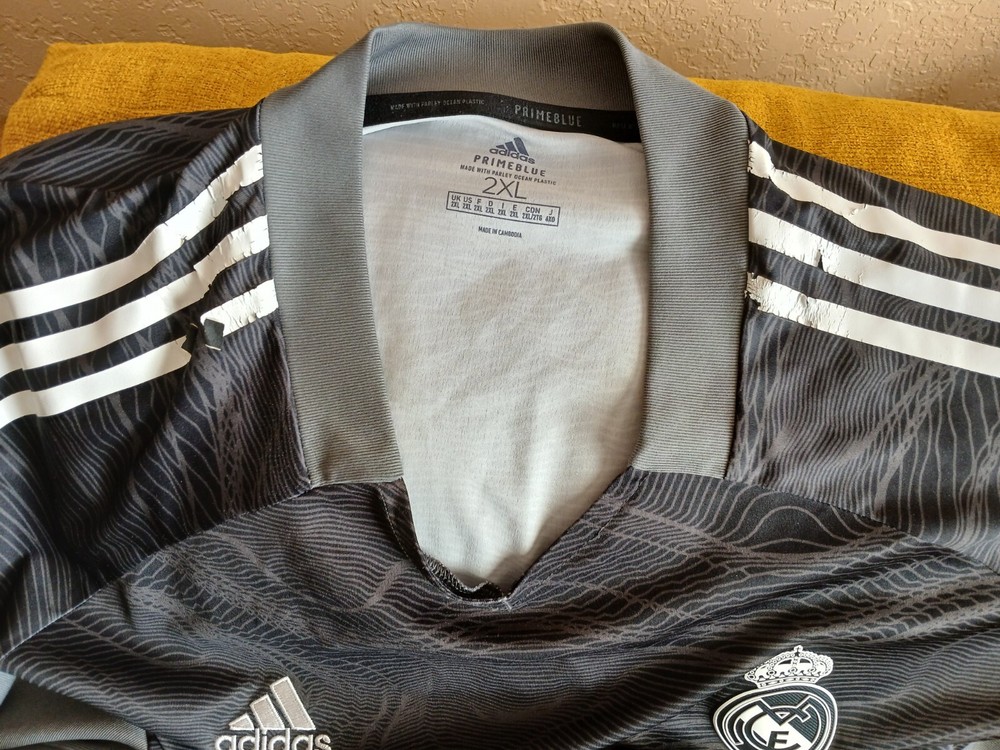 Show your support for Real Madrid with this soccer away jersey. The jersey features the iconic team colors of white and red, with the team's name and logo prominently displayed on the front. Made from high-quality materials, this jersey is perfect for any soccer fan or collector.Whether you're wearing it to cheer on your favorite team or adding it to your collection of sports memorabilia, this jersey is sure to impress. So don't miss out on the chance to own this piece of soccer history. Order now and show your support for Real Madrid!