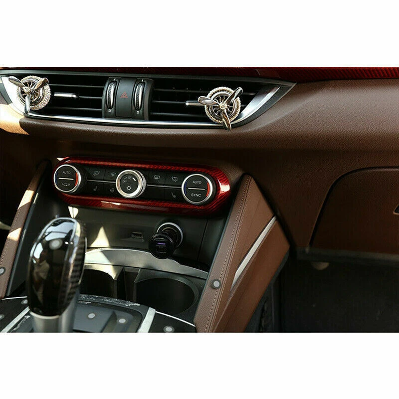 Real Red Carbon Fiber Air Condition Trim Cover Fit for Alfa Romeo Stelvio 17-20