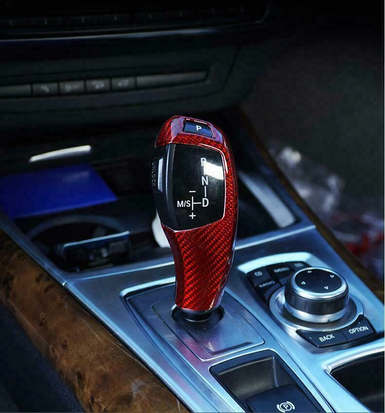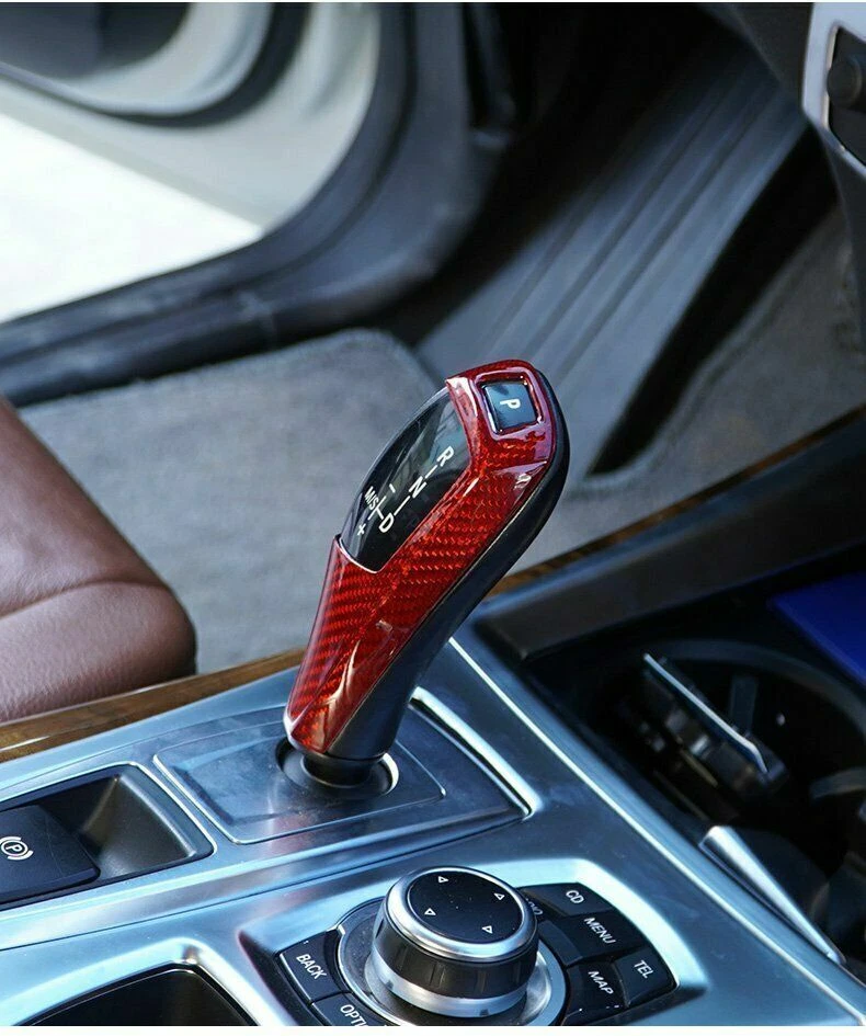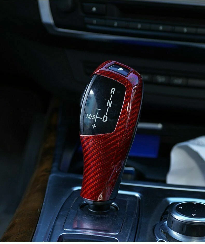 Real Red Carbon Fiber Gear Shift Knob Cover Fit for BMW X5 X6 E60 E70 E71