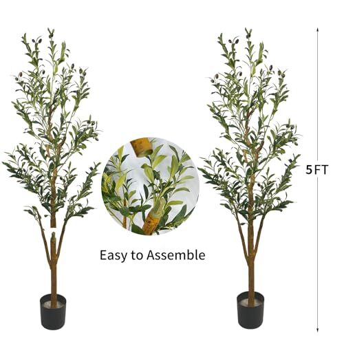 Realistic 5ft Faux Olive Tree with Potted Base & Lifelike Texture