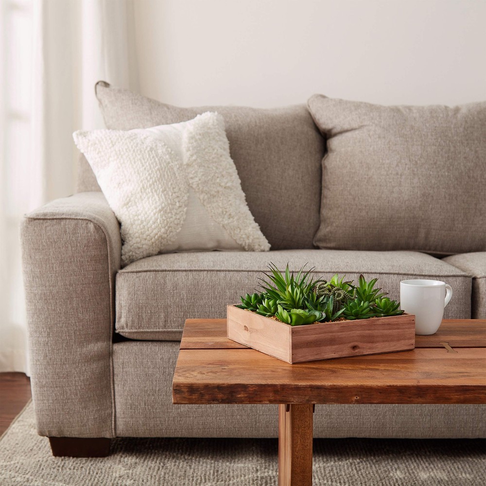 Enjoy beautiful greenery all year long with the Assorted Faux Succulent Arrangement by . These artificial plants are great for busy folks who want a bit of color and greenery in their home, but don’t have time to care for living plants. The plants are made of polyethylene plastic to appear more realistic than other artificial greenery. The plants come in a wooden box container for rustic charm. Each succulent and wooden box space is generously sized to add beauty to any room in your home and they make ideal gifts for housewarming parties, weddings or holidays. SATISFACTION - is committed to providing the consumer with the absolute best price and value on our entire line of products, which we ensure by applying a rigorous quality control process. NOTE: This is an exclusive product of and ONLY Faux Succulent Arrangements by are to be genuine IMPORTANT: Avoid buying counterfeit products and transacting with unauthorized sellers. Look for our logo on the packaging for every of our products. VERSATILE HOME ACCENT- These faux plants are designed for busy folks who want color and greenery in the home, but don’t have time to care for living plants. The bright colors and realistic look will add beauty to any room. HIGH QUALITY- Each artificial plant is made of high-quality polyethylene plastic. This gives each succulent a more lifelike look than other fake plants. The planter box is made of wood be lightweight and durable. GENEROUS SIZE- This set of faux succulents isn’t like others that are miniature and are too small for decoration. Each plant stands 5 inches tall with a 10-inch box and comes in a different style to create a unique display. PERFECT GIFT- Each piece of this artificial greenery arrangement is designed to add attractive charm and complement almost any décor. They make great gifts for housewarming parties, weddings, holidays and other special occasions. PRODUCT DETAILS- Materials: Polyethylene Plastic and Wood. Plant Dimensions: 10” L x 10” W x 5” H.