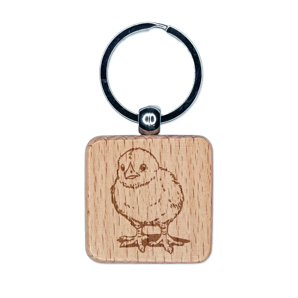 Realistic Baby Chick Chicken Engraved Wood Square Keychain Tag Charm