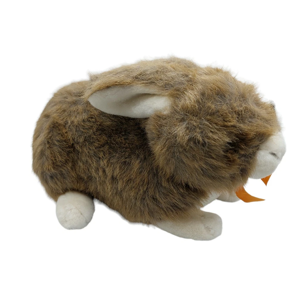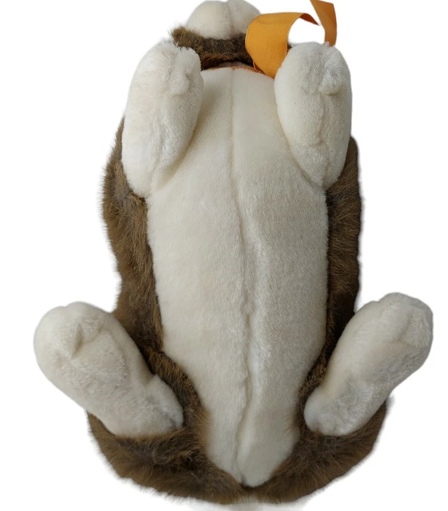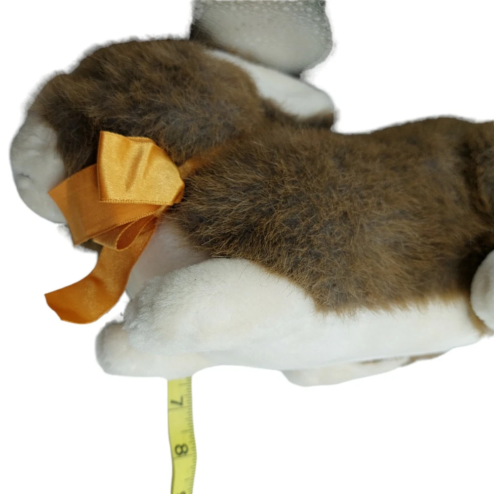 Realistic Easter Brown White Bunny Rabbit Stuffed Plush 11 inch Orange ribbon