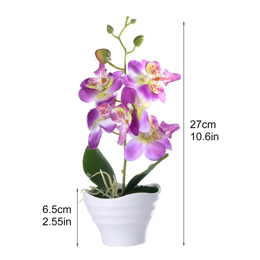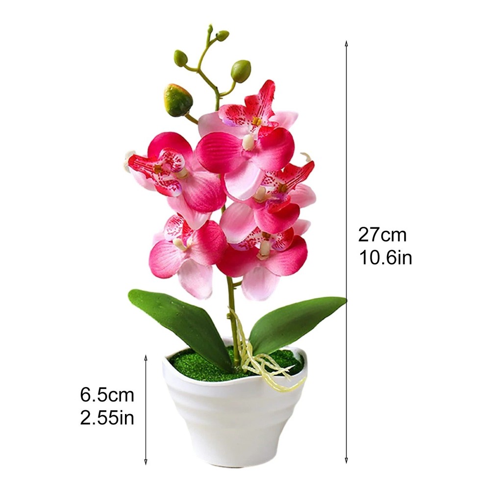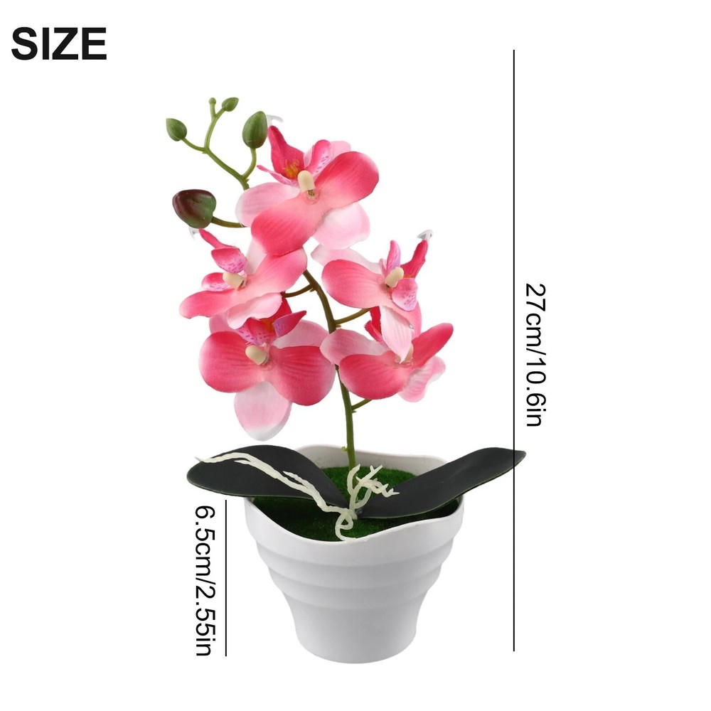 Artificial Orchid Flowers in Pot – Elegant & Lifelike Floral Decor Bring timeless beauty into your space with these realistic artificial orchid flowers . Crafted from high-quality silk and PU materials , they provide a natural look and soft touch , making them a perfect long-lasting alternative to real flowers . Key Features: 🌿 Lifelike & Elegant Design – Available in four different orchid styles, these artificial flowers replicate real orchids with stunning detail. 🌸 High-Quality Materials – Made from soft PU petals, plastic leaves, and an ABS pot , ensuring durability and a natural appearance . 💧 Easy Maintenance – No watering needed! Simply wipe with a damp cloth to keep them looking fresh. 🏡 Versatile Decoration – Ideal for homes, offices, restaurants, cafes, gardens, and festive occasions like Christmas, Valentine’s Day, and Mother’s Day . 🎁 Perfect Gift Choice – A thoughtful and elegant gift for any special occasion, adding charm to any space. Product Specifications: ✔ Material : ABS pot, silk flowers, PU petals, plastic leaves ✔ Size : Overall height : 27cm Diameter : 12cm Pot height : 6.5cm Flower head diameter : 7cm ✔ Weight : 110g ✔ Package Includes : 1 x Artificial Orchid Flower in Pot 💐 Enhance your space effortlessly with these beautiful, maintenance-free orchids! 🌸✨