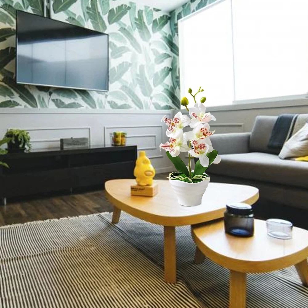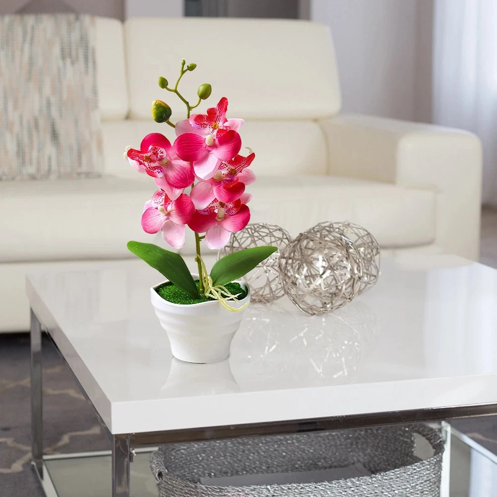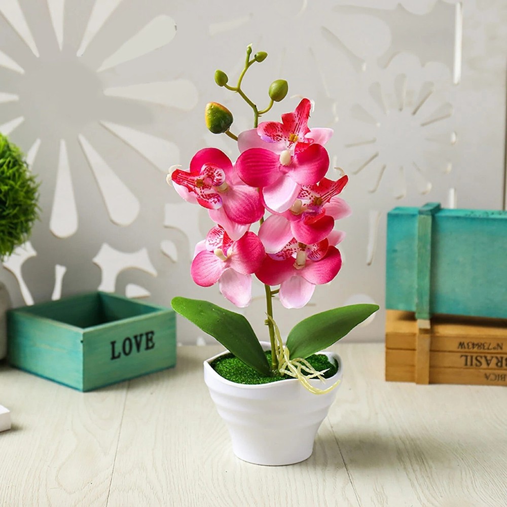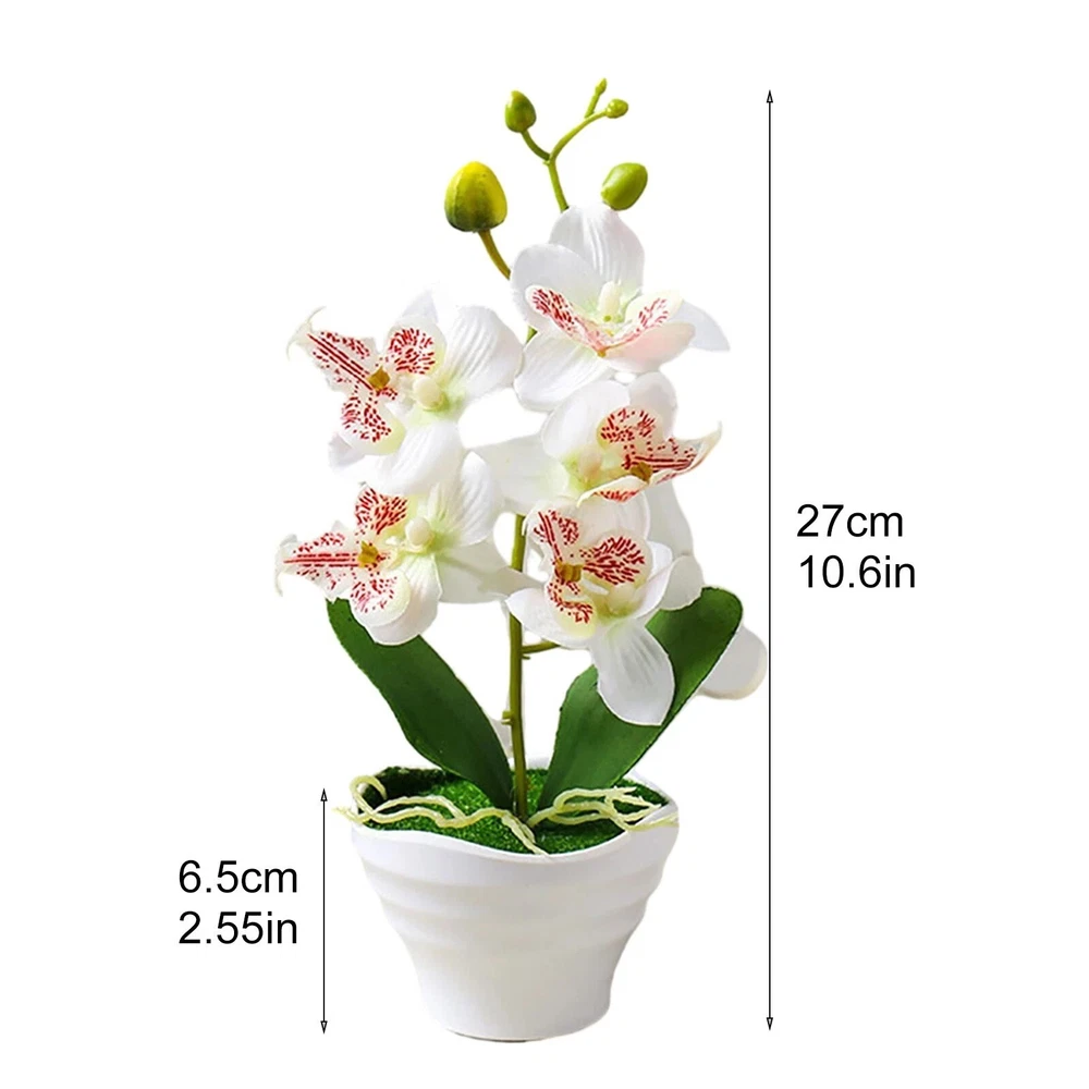 Artificial Orchid Flowers in Pot – Elegant & Lifelike Floral Decor Bring timeless beauty into your space with these realistic artificial orchid flowers . Crafted from high-quality silk and PU materials , they provide a natural look and soft touch , making them a perfect long-lasting alternative to real flowers . Key Features: 🌿 Lifelike & Elegant Design – Available in four different orchid styles, these artificial flowers replicate real orchids with stunning detail. 🌸 High-Quality Materials – Made from soft PU petals, plastic leaves, and an ABS pot , ensuring durability and a natural appearance . 💧 Easy Maintenance – No watering needed! Simply wipe with a damp cloth to keep them looking fresh. 🏡 Versatile Decoration – Ideal for homes, offices, restaurants, cafes, gardens, and festive occasions like Christmas, Valentine’s Day, and Mother’s Day . 🎁 Perfect Gift Choice – A thoughtful and elegant gift for any special occasion, adding charm to any space. Product Specifications: ✔ Material : ABS pot, silk flowers, PU petals, plastic leaves ✔ Size : Overall height : 27cm Diameter : 12cm Pot height : 6.5cm Flower head diameter : 7cm ✔ Weight : 110g ✔ Package Includes : 1 x Artificial Orchid Flower in Pot 💐 Enhance your space effortlessly with these beautiful, maintenance-free orchids! 🌸✨
