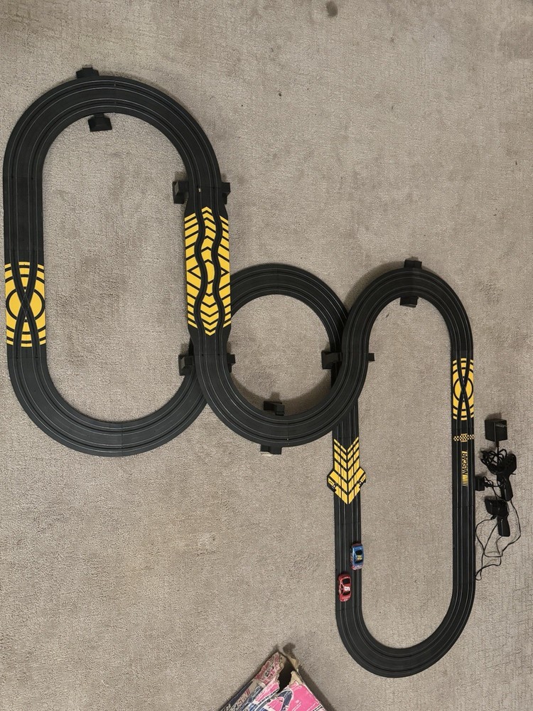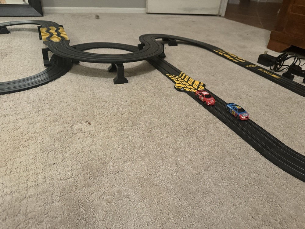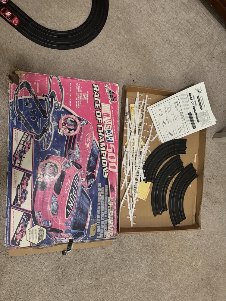 Life-like NASCAR 500 race of championship comes complete ready to run with two cars. Also see the pictures there’s three extra pieces of track runs good no longer need. You have any questions please feel free to message me thank you and have a good day.