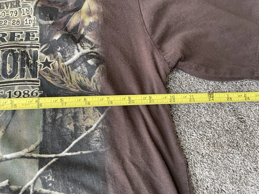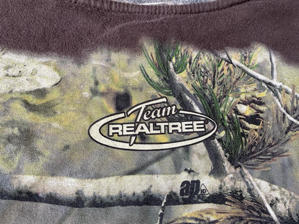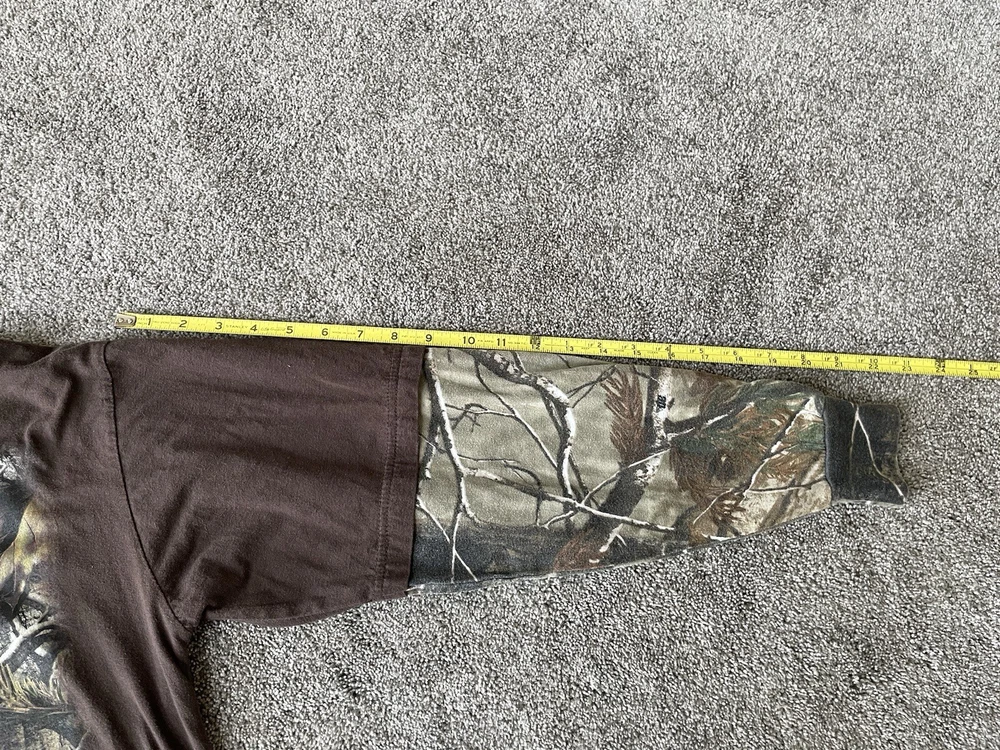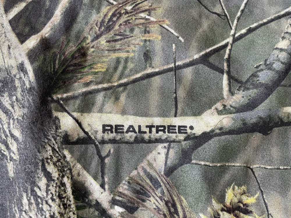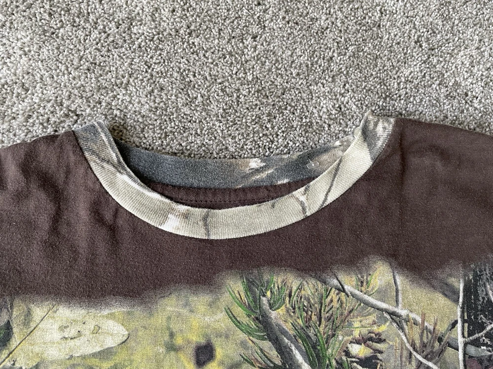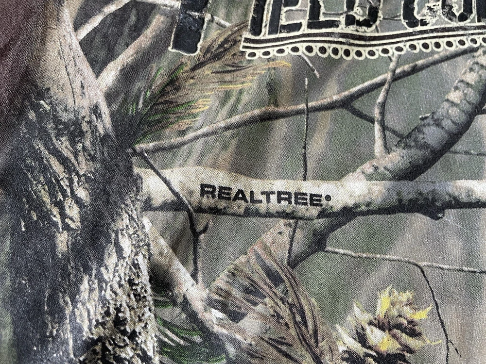 Get ready to hit the great outdoors with this Realtree Camo Shirt in size XL. The shirt features a Camouflage pattern with a Woodland Team Real Tree Labrador Dog theme, perfect for any nature or outdoor lover. The Long Sleeve shirt has a Crew Neckline and a Regular fit, making it comfortable and easy to wear in any season. Made from a knit fabric type, this T-Shirt is easy to care for and machine washable. The shirt also features a Double-Sided design with the Realtree logo accents. Whether you're going on a hike or just taking a walk in the park, this shirt is perfect for you.
