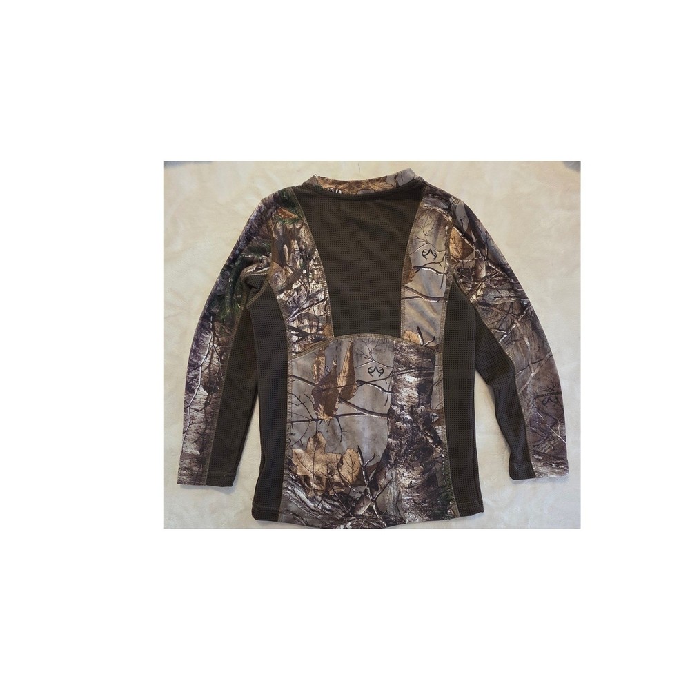 Realtree youth camo long sleeve performance shirt in. Features breathable mesh side panels and stretch fabric for comfort and movement. Lightweight and perfect for hunting season, outdoor activities, layering, or everyday wear. Size M (8) Condition Excellent pre-owned condition Fabric Shell: 94% Polyester / 6% Spandex Panels: 100% Polyester --- realtree youth, camo shirt boys, youth hunting shirt, camo long sleeve, boys outdoor top, hunting base layer, size 8 camo, outdoor kids clothing