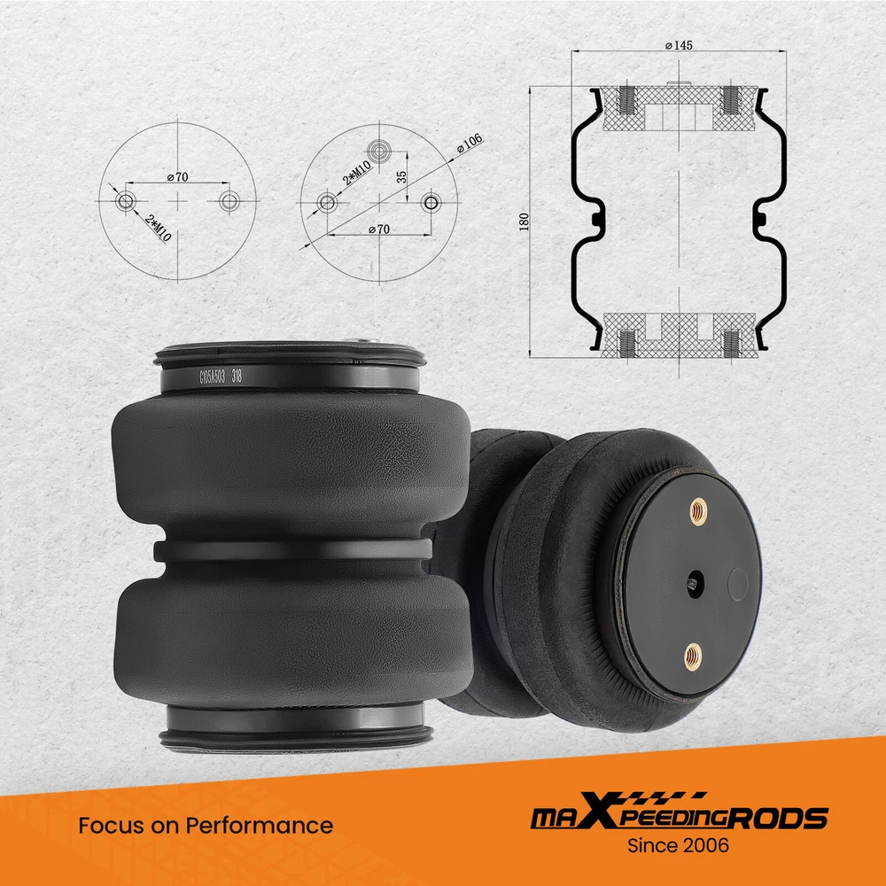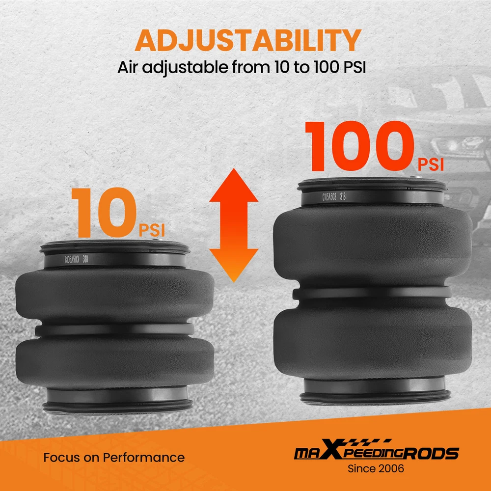YRMAP Rear Air Helper Spring KIt For Chevy Silverado GMC Sierra 2500HD 3500HD 2011-19 Air Suspension Bags Kit maXpeedingrods Air Suspension Bags Kit Fitment For Chevrolet Silverado 2500 HD 2011-2019 For Chevrolet Silverado 3500 HD 2011-2019 For GMC Sierra 2500 HD 2011-2019 For GMC Sierra 3500 HD 2011-2019 For single rear wheel (SRW) and dual rear wheel (DRW) model Fit most side mount fifth wheel hitch model Does not fit cab & chassis model Package Includes 2x Heavy Duty Double Bellow Air Ride Suspension bags 4x Upper and lower mounting brackets Includes All Brackets & Hardware Needed to Install Mounting Hardware Features Restore the original ride height and improve ride quality Specifications Condition Brand New Internal Jounce Bumper include Yes Stroke 100mm Placement on Vehicle Rear left and right Load capacity Up to 5000 LBS Minimum PSI 5 PSI Maximum PSI 100PSI Max. Extended 200mm Min. Compressed 100mm Features 1、Stress Test Over 5,000,000 Times:Durable and Safe 2、Burst Pressure≥2.0MPa:High Compressive Strength and Less Noise 3、24 Hours Air Tightness Test ≤ 0.02MPa:100% Air Tightness Guarantee 4、Temperature Range ≥ -40℃/ ≤ 70℃:Premium Natural Rubber Material 5、Use high-quality steel with high load-bearing capacity and long life. 6、Excellent and practical bolt-on installation. 7、Safe carrying capacity and stability 8、Restore the original ride height and improve ride quality 9、Ensure our driving comfort and reduce tire wear. maXpeedingrods Air Suspension Bags Kit Solves These Common Problems Other items you might also like Air Suspension Spring Bag Kit For GMC Silverado Sierra 1500 4WD 2019-24 Rear Air Suspension Spring Bag Kit 5000lbs For Dodge Ram 2500 3500 2003-2018 4WD Air Suspension Spring Kit 5000 lbs For GMC Sierra Chevrolet Silverado 1500 99-07 2x Cab Air Suspension Spring Bags for Peterbilt 379 W02-358-7036 29-03200 Rear Air Helper Spring Leveling Kit For Ford F250 F350 Super Duty 2005-2010 Air Suspension Spring Kit 5000lbs For Dodge Ram 1500 4 Wheel Drive 2019-24 Air Suspension Spring Kit For GMC Sierra 1500 Chevrolet 1500 4WD 2019-2024 Rear Air Spring Leveling Kit for Ford F250 F350 Super Duty Pickup 4WD RWD 99-07 Pair Rear Air Ride Suspension Shock for Chevrolet GMC Cadillac Escalade 25979393 Air Spring Bag Tow Assist Rear 5000lbs For GMC Sierra Chevrolet 1500 2007-2018 Air Suspension Spring Bag Kit Rear For F250 F350 Super Duty 2WD 4WD 2011-2016 Air Suspension Bag Kit 7500 lbs For Ford F250 F350 F450 Super Duty 4WD 2017-22 Shipping Terms of Sales Payment Contact us All orders will be shipped within 1 business day after payment has been processed. For orders placed before 5:30 AM PST on business days, most items will be shipped out on the same day. All orders will be shipped with a tracking number via USPS, UPS, or FedEx Express and delivered within 2-6 business days We do not ship to P.O. Boxes, APO/FPO addresses, or Military Mail Boxes. Please ensure your address is confirmed by PayPal before checkout, as we only ship to confirmed addresses. 30-day free return and money back guarantee If you are not satisfied with your purchase, you can return the item with its original packaging to us for a full refund with no restocking fee. Please note that the return cost should be paid by the seller. One Year Unlimited Mileage Quality Guarantee If you receive incorrect items, items that are damaged during transportation, or defective items, we will accept returns and cover the return freight. Please note that the return cost should be prepaid by the buyer. After inspecting the faulty item, we will issue a refund of the return cost to the buyer. We offer a full refund or replacement for all faulty items, which includes the cost of original shipping. Please contact us before initiating a return. Our representatives will provide you with detailed instructions on how to proceed. Our guarantee covers only the cost of the item. We are not responsible for installation or other fees, such as labor, towing, additional repairs, or related expenses. We only accept payment through Paypal for all orders, which should be made through eBay. Paypal offers various payment methods, including credit card, direct debit, VISA, and others. For more information, please visit Paypal. Our customer service center is open 24 hours a day, seven days a week. If you have any questions, please don't hesitate to contact us. We are dedicated to providing excellent customer service and will do everything we can to ensure your satisfaction.