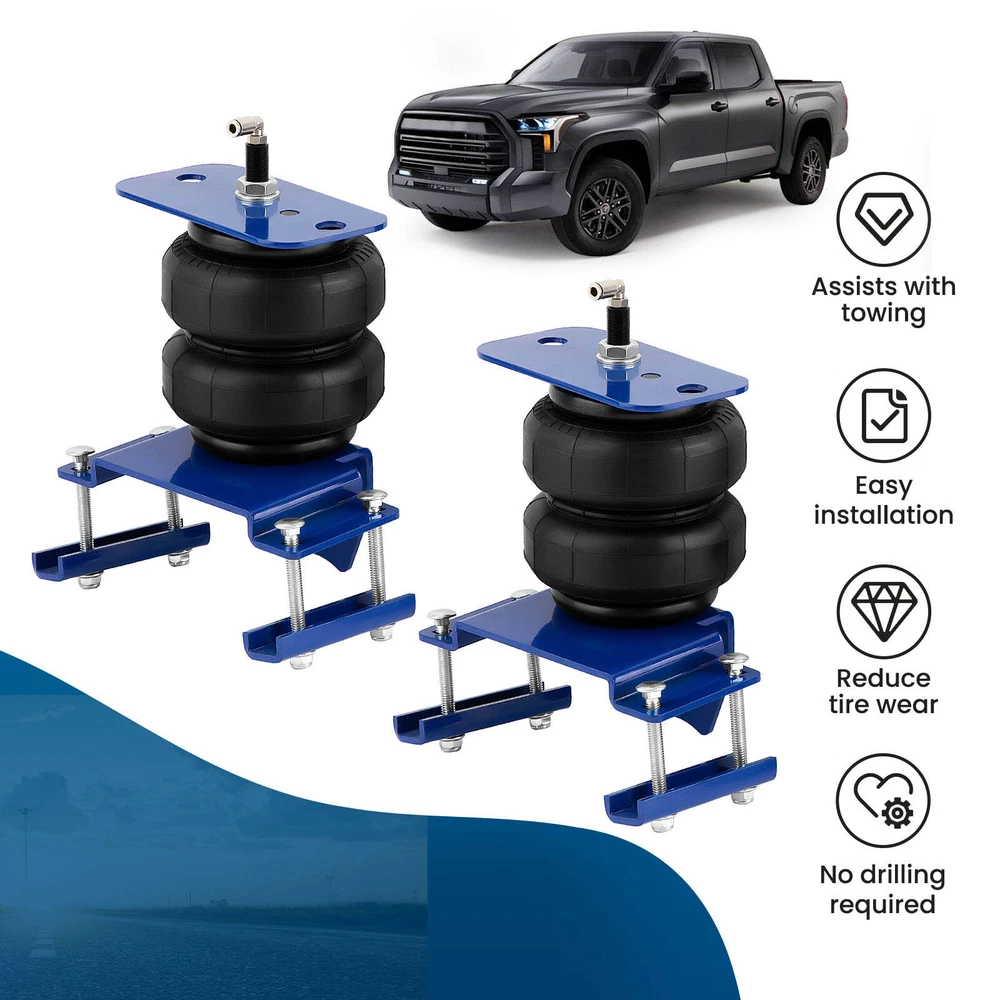 QSWOR Rear Air Helper Spring Suspension Kit Fit for Toyota Tundra 2007-2021 Air Suspension Bags Kit maXpeedingrods Air Suspension Bags Kit Fitment For Toyota Tundra (2WD, 4WD) 2007 - 2021 Fits for Vehicles WITH or w/OUT in Bed Hitches. Package Includes 2x Heavy Duty Double Bellow Air Ride Suspension bags Includes All Brackets & Hardware Needed to Install Mounting Hardware Features Restore the original ride height and improve ride quality Specifications Condition Brand New Internal Jounce Bumper include No Stroke 130mm Placement on Vehicle Rear left and right Load capacity Up to 5000 LBS Minimum PSI 10 PSI Maximum PSI 100PSI Max. Extended 200mm Min. Compressed 70mm Features 1、Stress Test Over 5,000,000 Times:Durable and Safe 2、Burst Pressure≥2.0MPa:High Compressive Strength and Less Noise 3、24 Hours Air Tightness Test ≤ 0.02MPa:100% Air Tightness Guarantee 4、Temperature Range ≥ -40℃/ ≤ 70℃:Premium Natural Rubber Material 5、Use high-quality steel with high load-bearing capacity and long life. 6、Excellent and practical bolt-on installation. 7、Designed to relieve the pressure usually placed on your vehicle's leaf springs when your vehicle is carrying heavy loads. maXpeedingrods Air Suspension Bags Kit Solves These Common Problems Why Choose MaXpeedingrods? Fatigue Testing Airtightness Test Air Pressure Test Trusted by champions On Board Air Compressor Kit See Details Make Universal for most air bags suspension kit Example 1 For Ford Example 2 For Dodge Example 3 For GMC Example 4 For Chevy Other items you might also like Oxygen Sensor For Lexus Gx470 Lx470 Toyota Sequoia Tundra V8-4.7 Land Cruiser Titanizing 4340 Connecting Rods for Toyota Tundra Lexus LS GS 1UR 4.6L 3UR 5.7L Air Fuel Ratio Oxygen O2 Sensor Upstream For Pontiac Vibe Upstream L4 234-9052 Shipping Terms of Sales Payment Contact us All orders will be shipped within 1 business day after payment has been processed. For orders placed before 5:30 AM PST on business days, most items will be shipped out on the same day. All orders will be shipped with a tracking number via USPS, UPS, or FedEx Express and delivered within 2-6 business days We do not ship to P.O. Boxes, APO/FPO addresses, or Military Mail Boxes. Please ensure your address is confirmed by PayPal before checkout, as we only ship to confirmed addresses. 30-day free return and money back guarantee If you are not satisfied with your purchase, you can return the item with its original packaging to us for a full refund with no restocking fee. Please note that the return cost should be paid by the seller. One Year Unlimited Mileage Quality Guarantee If you receive incorrect items, items that are damaged during transportation, or defective items, we will accept returns and cover the return freight. Please note that the return cost should be prepaid by the buyer. After inspecting the faulty item, we will issue a refund of the return cost to the buyer. We offer a full refund or replacement for all faulty items, which includes the cost of original shipping. Please contact us before initiating a return. Our representatives will provide you with detailed instructions on how to proceed. Our guarantee covers only the cost of the item. We are not responsible for installation or other fees, such as labor, towing, additional repairs, or related expenses. We only accept payment through Paypal for all orders, which should be made through eBay. Paypal offers various payment methods, including credit card, direct debit, VISA, and others. For more information, please visit Paypal. Our customer service center is open 24 hours a day, seven days a week. If you have any questions, please don't hesitate to contact us. We are dedicated to providing excellent customer service and will do everything we can to ensure your satisfaction.