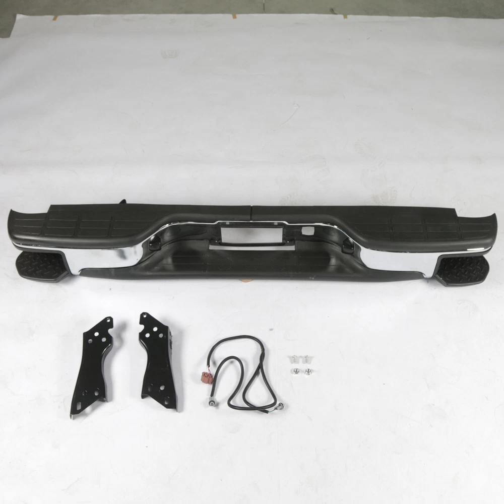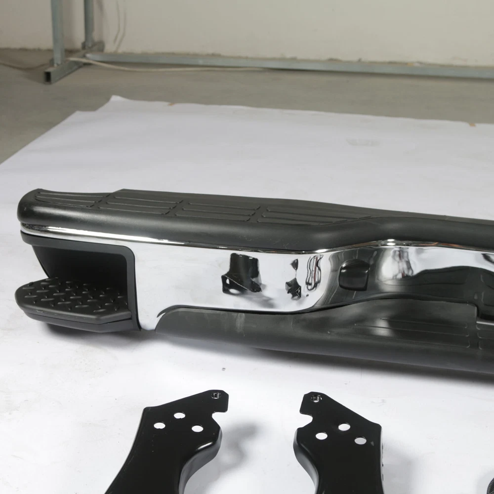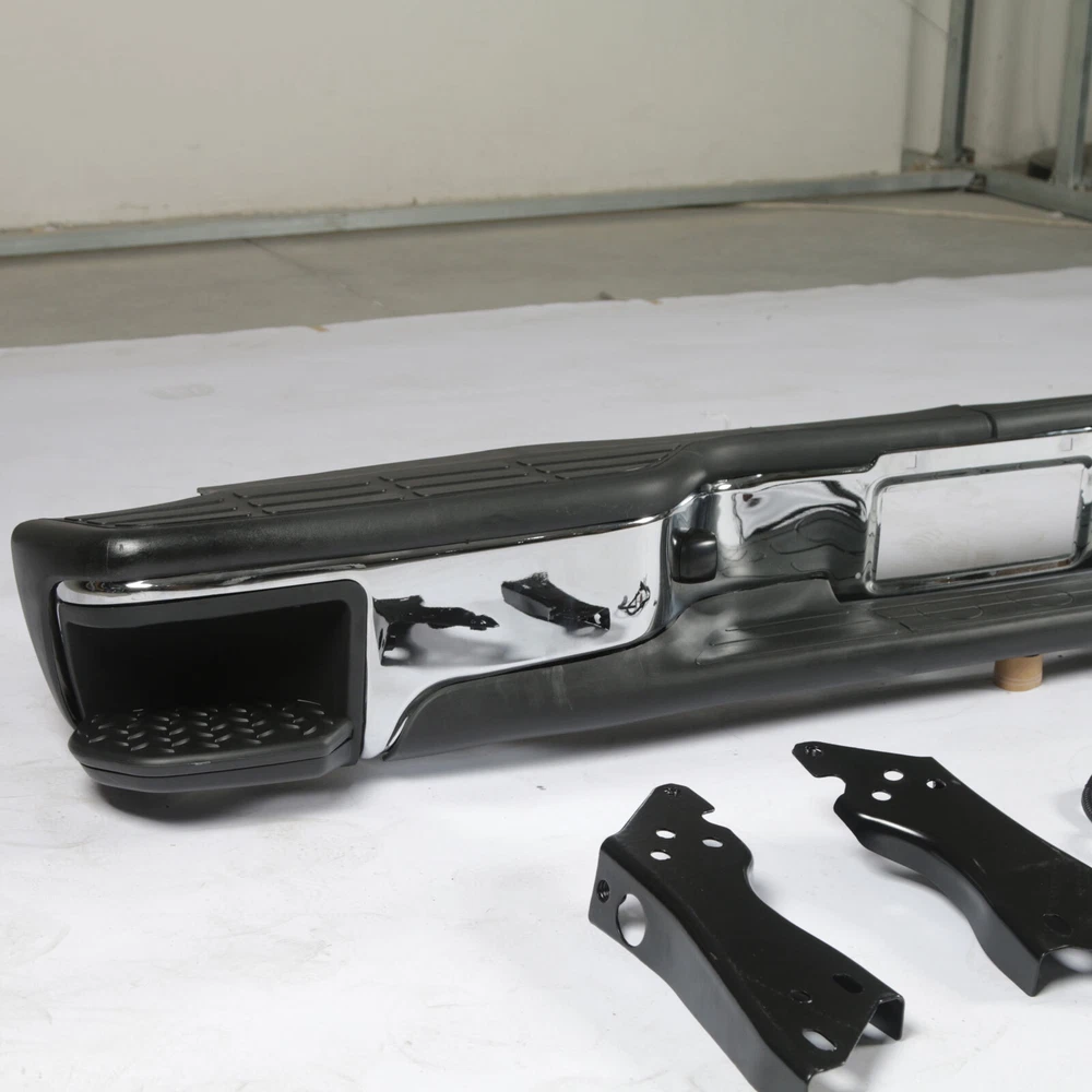 Feature Type:Rear Bumper w/Corner Steps Color:Black&Silver Material:Steel Surface Finish:Chrome Installation Directly replace the old bumper,no modification Professional installation is highly recommended. Fitment For 1999-2006 Chevy Silverado GMC Sierra 1500 07 Classic Note Use your own bolts Only Fit Fleetside models Don't Fit Stepside models Package Includes 1 Rear Bumper 2 Brackets 2 License Plate Lights On Jan 23, 2025 at 22:22:09 PST, seller added the following information: On Jan 24, 2025 at 11:46:00 PST, seller added the following information: