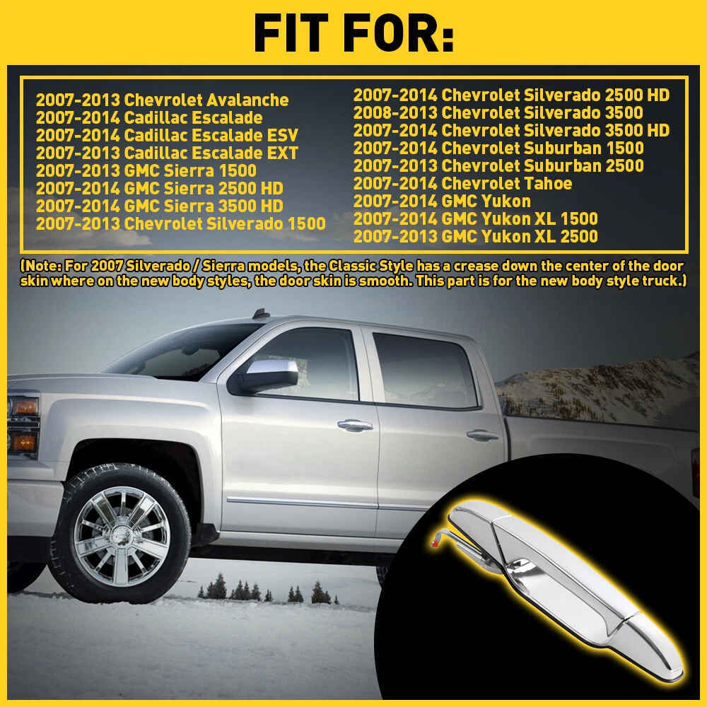 Exterior Door Panel Handle Fits For Chevrolet,Cadillac,Gmc etc Fits for: 2007-2013 Chevrolet Avalanche 2007-2014 Cadillac Escalade 2007-2014 Cadillac Escalade ESV 2007-2013 Cadillac Escalade EXT 2007-2013 GMC Sierra 1500 2007-2014 GMC Sierra 2500 HD 2007-2014 GMC Sierra 3500 HD 2007-2013 Chevrolet Silverado 1500 2007-2014 Chevrolet Silverado 2500 HD 2008-2013 Chevrolet Silverado 3500 2007-2014 Chevrolet Silverado 3500 HD 2007-2014 Chevrolet Suburban 1500 2007-2013 Chevrolet Suburban 2500 2007-2014 Chevrolet Tahoe 2007-2014 GMC Yukon 2007-2014 GMC Yukon XL 1500 2007-2013 GMC Yukon XL 2500 Rear Driver Left For Handle 45486 Door Silverado Cadillac Exterior Door Panel Handle Fits For Chevrolet,Cadillac,Gmc etc Fits for: 2007-2013 Chevrolet Avalanche 2007-2014 Cadillac Escalade 2007-2014 Cadillac Escalade ESV 2007-2013 Cadillac Escalade EXT 2007-2013 GMC Sierra 1500 2007-2014 GMC Sierra 2500 HD 2007-2014 GMC Sierra 3500 HD 2007-2013 Chevrolet Silverado 1500 2007-2014 Chevrolet Silverado 2500 HD 2008-2013 Chevrolet Silverado 3500 2007-2014 Chevrolet Silverado 3500 HD 2007-2014 Chevrolet Suburban 1500 2007-2013 Chevrolet Suburban 2500 2007-2014 Chevrolet Tahoe 2007-2014 GMC Yukon 2007-2014 GMC Yukon XL 1500 2007-2013 GMC Yukon XL 2500 Note: For 2007 Silverado / Sierra models, the Classic Style has a crease down the center of the door skin where on the new body styles, the door skin is smooth. This part is for the new body style truck. Specifications: OE number: 15915659 22738725 25960521 80105 GM1520130 Material: ABS Color:Chrome Placement on vehicle: Exterior(Rear Left) Features: *Perfect fit Manufactured according to original one to match with your vehicle perfectly. *Strict Quality Control All of our handles undergo strict quality control not just before shipping but throughout the production process. *Durable Mainly made of high-quality plastic material to ensure the durability. Packaging include: Door Handle*1 Item Specifics Brand Unbranded Manufacturer Part Number 25960521 , 22738725 Type Rear Left Side Exterior Door Handle Other Part Number 15915659 Placement on Vehicle Rear, Left Side Material ABS Interchange Part Number 15915659, 25960521, 80105 Fitment Type Direct Replacement Manufacturer Warranty 1 Year Color Black Number of Pieces 1 Finish Chrome Features Durable, Easy Installation, Without Key Hole OE/OEM Part Number ?22738725 Attachment Type Bolt-On Fit For 2007-2013 Chevrolet Silverado 1500 Payment We accept PayPal via eBay Secure Check-Out only. Immediate payment needs to be processed for items with Add to Cart option so that any promotional discounts can be applied to your order immediately. Shipping 1 .We do everything we can to ship your orders out as soon as possible. 2. Shipping and Handling: We process orders within two business day after the payment was clear. Returns Our 30-day Satisfaction Guarantee assures our customers that they will receive all orders promptly and exactly as described. In addition, it allows customers to return new and unused products in their original factory condition for any reason within 30 days from the date of purchase. 1. All returns must be pre-approved by AUXITO and have a return merchandise authorization(RMA) number. Unauthorized returns will not be accepted. 2. Buyers are responsible for appropriate packing, returning shipping cost, insurance and returning the item in "new" condition. Used items will not be accepted for return. 3. We will replace the returning item with an identical item, issue a full store credit or a full refund. Contact Us Our Working Time:(GMT+8)Monday to Friday,9:00-18:00. For inquires and customer support, please send your email via ebay email system. All emails will be responded to within 24 hours during business days. Feedbacks 1. We appreciate your business and strived to improve our customer service and our commitment to quality. 2. We will leave a positive feedback immediately after payment is received. We appreciate a positive feedback as much as you do. 3. If for some reason there is any issue with the purchase, please contact us prior to leaving feedback, and we will be glad to work with you to have it resolved. DESCRIPTION PAYMENT SHIPPING RETURN POLICY CONTACT US Hot Item 4" Red Truck Long Performance High Flow Cold Air Intake Cone Dry Filter Cotton USD 27.54 Fit For 2015-2019 Hyundai Center Light Gray Sonata Armrest Console Lid Cover USD 13.29 190 PCS Bumper Fender Moulding Side Garnish Grille Retainer Clip ABS Various USD 10.99 Waterproof Motorcycle Handlebar Dual USB Phone Charger Cigarette Lighter Socket USD 13.29 AUXITO 7440/7443 Turn LED Signal Light Bulbs Anti Hyper Flash Amber Super Bright USD 21.84 Hot Item Fit For 2015-2019 Hyundai Center Light Gray Sonata Armrest Console Lid Cover USD 13.29 AUXITO 7440/7443 Turn LED Signal Light Bulbs Anti Hyper Flash Amber Super Bright USD 21.84 4" Red Truck Long Performance High Flow Cold Air Intake Cone Dry Filter Cotton USD 27.54 190 PCS Bumper Fender Moulding Side Garnish Grille Retainer Clip ABS Various USD 10.99 Waterproof Motorcycle Handlebar Dual USB Phone Charger Cigarette Lighter Socket USD 13.29 Rear Driver Left For Handle 45486 Door Silverado Cadillac Exterior Door Panel Handle Fits For Chevrolet,Cadillac,Gmc etc Fits for: 2007-2013 Chevrolet Avalanche 2007-2014 Cadillac Escalade 2007-2014 Cadillac Escalade ESV 2007-2013 Cadillac Escalade EXT 2007-2013 GMC Sierra 1500 2007-2014 GMC Sierra 2500 HD 2007-2014 GMC Sierra 3500 HD 2007-2013 Chevrolet Silverado 1500 2007-2014 Chevrolet Silverado 2500 HD 2008-2013 Chevrolet Silverado 3500 2007-2014 Chevrolet Silverado 3500 HD 2007-2014 Chevrolet Suburban 1500 2007-2013 Chevrolet Suburban 2500 2007-2014 Chevrolet Tahoe 2007-2014 GMC Yukon 2007-2014 GMC Yukon XL 1500 2007-2013 GMC Yukon XL 2500 Note: For 2007 Silverado / Sierra models, the Classic Style has a crease down the center of the door skin where on the new body styles, the door skin is smooth. This part is for the new body style truck. Specifications: