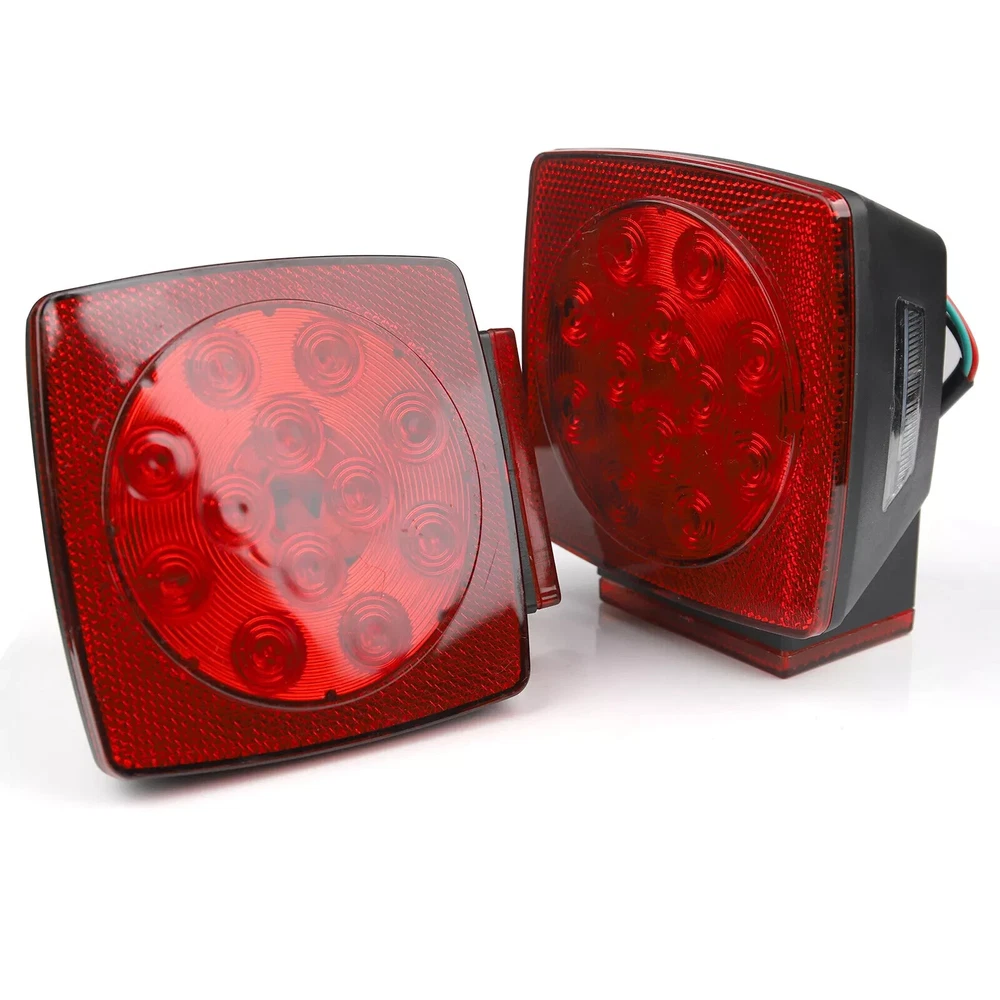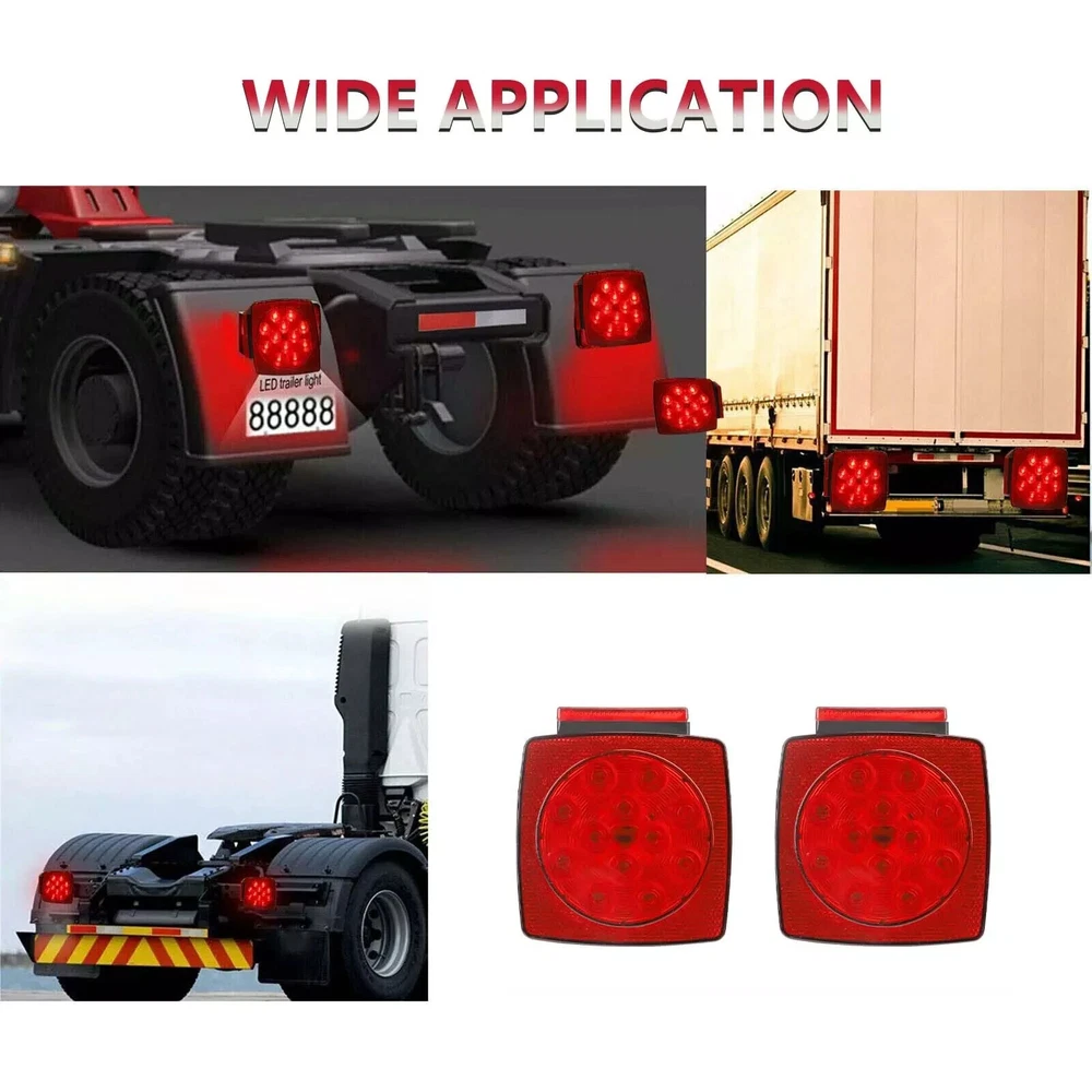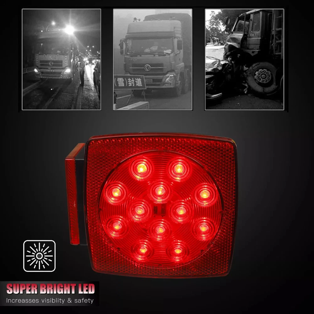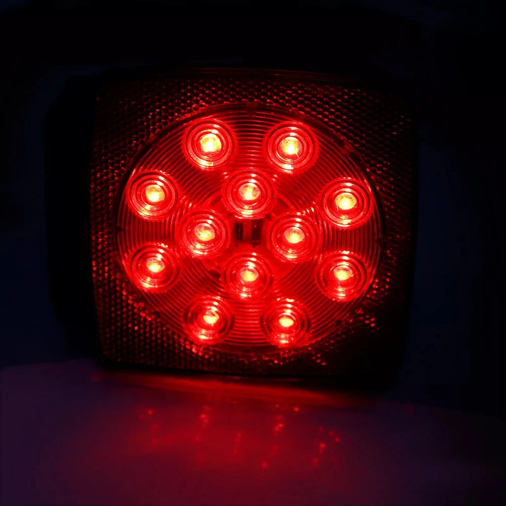 Rear LED Submersible Square Trailer Tail Lights Kit Boat Truck Waterproof 12V