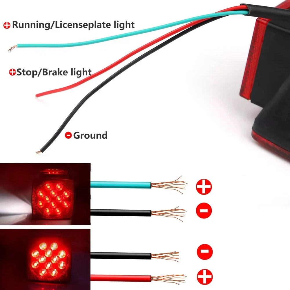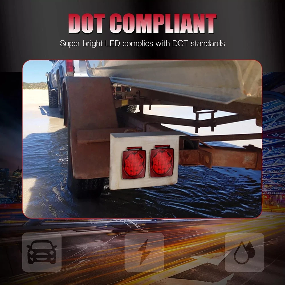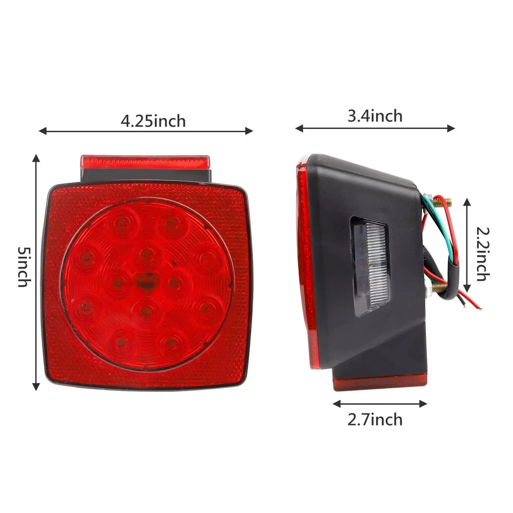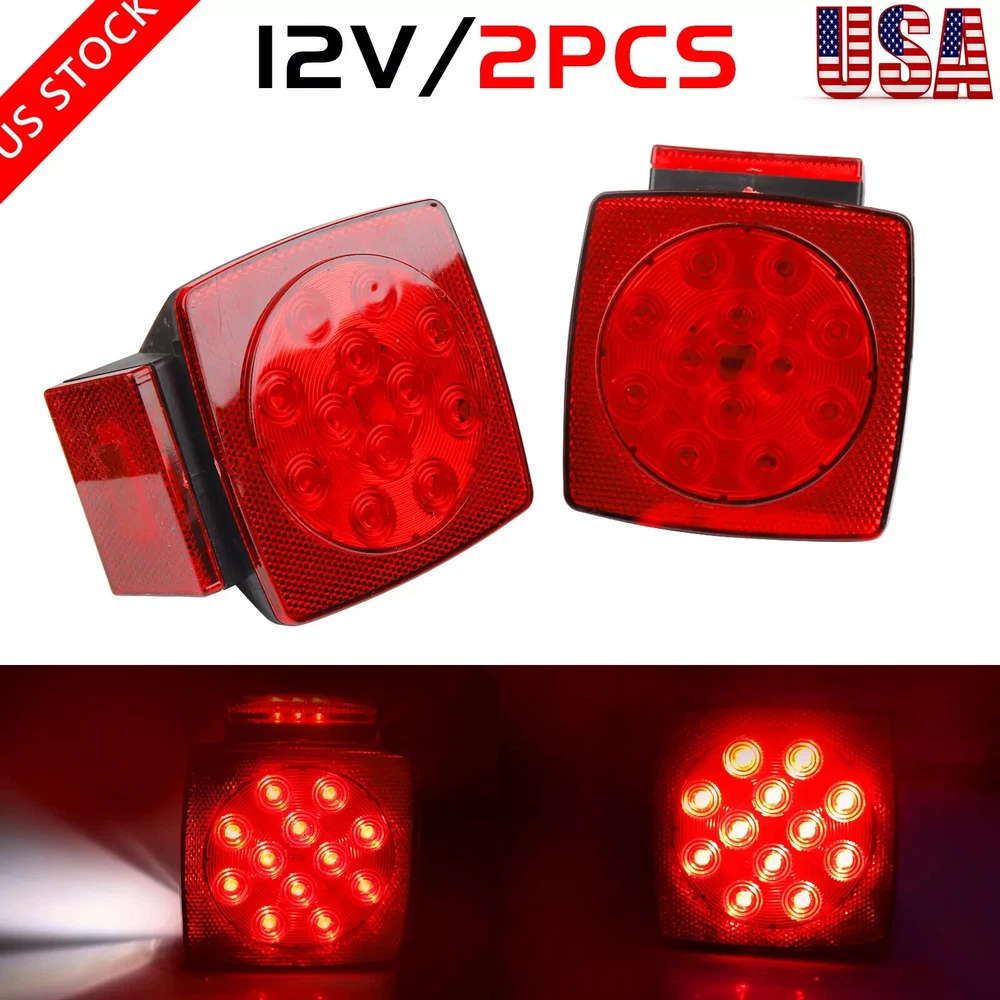 Rear LED Submersible Square Trailer Tail Lights Kit Boat Truck Waterproof 12V