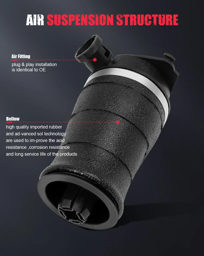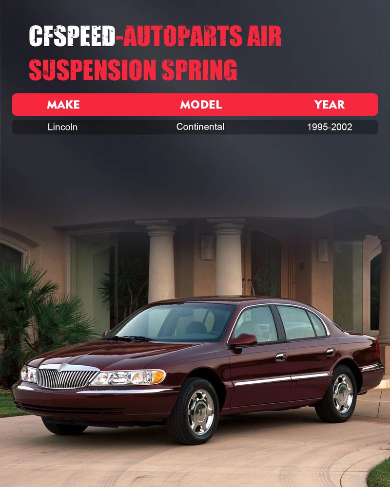 Notes: Please double confirm the compatibility chart as well as the OEM number before purchasing. Instruction is not included. Professional installation is recommended. *OEM Part Number: 3U2Z5580JA,3U2Z5580NA *Item Specifications: Key Words: Rear Left Air Suspension Spring Bag For 1995-2002 Lincoln Continental Package Includes: Single for Rear Left Air Suspension Spring Bag *Compatibility Chart: 1, You can distinguish specific model of an automobile by VIN(Vehicle Identification Number). 2, VIN(Vehicle Identification Number) consists of total 17 English letters and arabic digits. Rear Left Air Suspension Air Spring For Lincoln Continental Anniversary Notes : Please double confir m the compatibility chart as well as the OEM number before purchasing. Instruction is not included. Professional installation is recommended. *OEM Part Number: 3U2Z5580JA,3U2Z5580NA *Item Specifications: Key Words: Rear Left Air Suspension Spring Bag For 1995-2002 Lincoln Continental Package Includes: Single for Rear Left Air Suspension Spring Bag *Compatibility Chart: 1, You can distinguish specific model of an automobile by VIN(Vehicle Identification Number). 2, VIN(Vehicle Identification Number) consists of total 17 English letters and arabic digits. 3, VIN does not include the letters I (i), O (o), and Q (q) (to avoid confusion with numerals 1 and 0). Lincoln Continental Anniversary Sedan 4-Door 4.6L 1996 Continental Base Sedan 4-Door 4.6L 1997-2002 Continental Diamond Anniversary Sedan 4-Door 4.6L 1995 Continental Signature Sedan 4-Door 4.6L 1995 Continental Spinnaker Edition Sedan 4-Door 4.6L 1995-1997 * Generation & Evolution: Lincoln Continental Edsel Ford prototype (1939) First generation (1939-1948) Second generation (1956-1957) Third generation (1958-1960) Mark III (1958) Mark IV (1959) Mark V (1960) Fourth generation (1961-1969) Fifth generation (1970-1979) Sixth generation (1980) Seventh generation (1982-1987) Eighth generation (1988-1994) Ninth generation (1995-2002) Tenth generation (2017-present) *Platform Drive Layout : Front Engine-Front Wheel Drive Layout *Installation Guideline: 1.Place new air spring into lower suspension seat. Press down on piston until the plastic locking clips snap into place.(reverse step#7) 2.Pull up on the air spring cap and lock it back to the top body bracket.(reverse step#6) 3.Replace o-rings and install the solenoid in the new air spring.(reverse steps 4 and 5) 4.Replace wheel and lower suspension. 5.Turn air suspension switch back to the on position and start vehicle. Suspension will automatically return to its normal trim height. *Warning & Notice: Vent all air pressure from the air suspension system prior to disconnecting or removing any air suspension components. It is dangerous to remove air suspension components while under pressure. Failure to follow this instruction may result in serious personal injury. Any air spring which is unfolded must be refolded prior to being installed in a vehicle. Refer to the procedure. An incorrectly folded air spring could rupture, altering the handling characteristics of the vehicle. If a vehicle has been driven with an incorrectly folded air spring, a new air spring must be installed. Failure to follow these instructions may result in serious injury to vehicle occupant(s). Failure to observe the following instructions may result in a sudden failure of the air spring or suspension system. Any rear spring which is unfolded must be refolded prior to being installed in a vehicle. The air spring refolding procedure should only be used for an air spring which has never supported the vehicle's weight while in the incorrectly folded position. Incorrectly folded air springs found on vehicles during pre-delivery inspection or after use must be installed new. Do not attempt to inflate any air spring which has been collapsed while uninflated from the rebound hanging position to the jounce stop. When installing a new air spring, care must be taken not to apply a load to the suspension until springs have been inflated using the air spring fill procedure. After inflating an air spring in the hanging position, it must be inspected for correct shape. 1.NOTE: The vehicle must be positioned on a suitable lifting device prior to deflating the air suspension system. With the vehicle in NEUTRAL, position on a hoist until the wheel and tire assemblies are slightly above the ground. 2.Using the scan tool, vent the air springs. 3.Remove the air spring retainer. 4.Detach the air spring from the rear axle. 5.Remove the air spring in the following sequence. 1.Disconnect the air spring solenoid electrical connector. 2.Compress the quick connect locking ring and pull out the air tube. 3.Remove the air spring. * Frequently Asked Questions : How to prevent the damage of air springs/How to extend the service life of air springs/struts etc.? An air strut with separable air springs If your vehicle offers a separable air suspension (Audi Allroad A6 C5, Mercedes-Benz W164, BMW X5, etc.), you should regularly (about once a week) lift the car to the maximum position, and remove dirt with a high-pressure cleaner (keep the cleaner at a distance to the air spring about 30 cm/12 inches, otherwise water pressure can damage the air spring). The highest position may vary depending on your model and regulation options. Therefore, please test this by trying the different modes available to you (Sport, comfort, dynamic, off-road) and choose the one that sets your vehicle to the highest position. The dirt will most likely be found under the fold of the pneumatic chambers. If you find a frozen layer of bitumen on the piston guide (the part of a strut on which the air spring is installed), it is recommended to clean it as well. Whenever possible, avoid riding on fresh asphalt, as fresh bitumen mixed with sand immediately results in a build-up of abrasives on the piston and in turn contributes to accelerated wear and tear of the air spring. A complete air suspension shock Many 