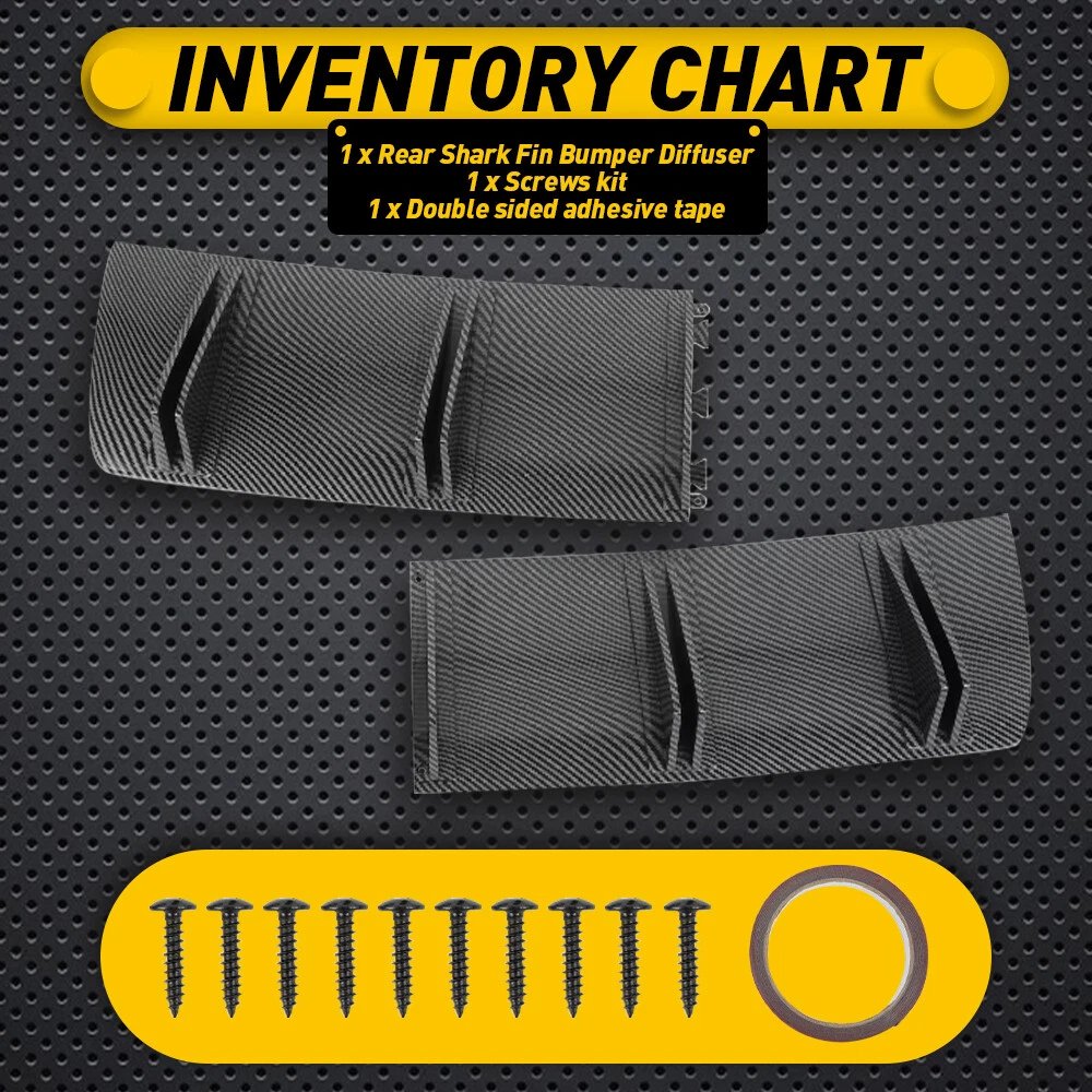 Fit for: Suitable for most cars with flat bottom of rear bumper and exhaust pipe not in the middle. If the model has an exhaust pipe on the left and right, the distance between the exhaust pipes must be greater than 81cm. Specifications: Product Material: ABS Color: Carbon fiber (as pictures show) Placement on Vehicle: Lower, rear Features: 【Reduce Air Resistance】 This shark fin diffuser designed to increase a vehicle's aerodynamic performance and improve the stability of vehicle during fast driving. 【Excellent Appearance】 Rear Lower Diffuser 10 Fins Bumper Lip Splitter Spoiler Carbon Fiber For Honda M Fit for: Suitable for most cars with flat bottom of rear bumper and exhaust pipe not in the middle. If the model has an exhaust pipe on the left and right, the distance between the exhaust pipes must be greater than 81cm. Specifications: Product Material: ABS Color: Carbon fiber (as pictures show) Placement on Vehicle: Lower, rear Features: 【Reduce Air Resistance】 This shark fin diffuser designed to increase a vehicle's aerodynamic performance and improve the stability of vehicle during fast driving. 【Excellent Appearance】 Shark fin and clean lines design with beautiful appearance to decorate your car, which gives your vehicle a more aggressive racing look. 【ABS Material】 Made of ABS material with high-quality, waterproof, durable functions and will not easy to break. 【Universal Fit】 Universal fit for most cars, please measure the size before purchasing. Note: Please confirm the size and make sure that there is enough space to install before purchasing!!! Professional installation is required. Packaging Include: 1 x Rear Shark Fin Bumper Diffuser 1 x Screws kit 1 x Double sided adhesive tape ABOUT US Rear Lower Diffuser 10 Fins Bumper Lip Splitter Spoiler Carbon Fiber For Honda M Fit for: Suitable for most cars with flat bottom of rear bumper and exhaust pipe not in the middle. If the model has an exhaust pipe on the left and right, the distance between the exhaust pipes must be greater than 81cm. Specifications: Product Material: ABS Color: Carbon fiber (as pictures show) Placement on Vehicle: Lower, rear Features: 【Reduce Air Resistance】 This shark fin diffuser designed to increase a vehicle's aerodynamic performance and improve the stability of vehicle during fast driving. 【Excellent Appearance】 Shark fin and clean lines design with beautiful appearance to decorate your car, which gives your vehicle a more aggressive racing look. 【ABS Material】 Made of ABS material with high-quality, waterproof, durable functions and will not easy to break. 【Universal Fit】 Universal fit for most cars, please measure the size before purchasing. Note: Please confirm the size and make sure that there is enough space to install before purchasing!!! Professional installation is required. Packaging Include: 1 x Rear Shark Fin Bumper Diffuser 1 x Screws kit 1 x Double sided adhesive tape FAQ Shipping Returns Contact Us Payment Why swith to LED? LEDs not only give your vehicle a clean, modern look but, with proper use, will outlast any halogen bulb and HID bulb! Low energy draw, high lumen output, and instant on/off LED technology out shines stock bulbs in every way. Which bulbs are used in my vehicle? Check Sylvania automotive lamp replacemnt guide , you can select the year, make, and model of your vehicle, then select the application you want to replace or upgrade from stock. What does CAN Bus mean? CAN Bus means Controller Area Network Bus. This system monitors your vehicle and reports operating conditions. CAN Bus systems are commonly found in European vehicles such as BMW, Audi, Mercedes, Volkswagen, Porsche, and in many American vehicles. While most late model American vehicles have CAN Bus systems, it is always good to check with your vehicle dealer to see which system your vehicle has before purchasing electrical products. When do you need Warning Canceller? Some vehicles with cmplex internal computers(such as Audi,BMW,Jaguar,Mercedes,etc.) might report on-dash errors or flickering on the headlights. The warning canceller fixes the dashboard warning and flickering effect. Bulb Out Dashboard Error: On some vehicles, the dashboard will report as if you have a headlight bulb missing or burnt. It does not affect the headlights functioning, but the light on-dash will be on. The warning canceller fixes the issue. Flickering Issue: This happens when your vehicle does not recognize the new headlights installed. When turning the headlights on, the vehicle's computer does not understand the signal back from the headlights hence thinking they are still off. This triggers the headlight flickering effect. The warning canceller solves this issue. LED Advantages: Very low and efficient energy consumption than halogen bulbs & HID Bulbs Compared with HID bulbs, LED bulbs Light up instantly, no warm up period Low voltage protection, high precision constant current driver chip Longer lifespan than HID and halogen bulbs Light can be controlled easily in color and intensity Easy to install a LED headlight conversion kit (1) We will ship your item(s) within 24 hours. (2) We ship this item to US only via USPS first class mail. It usually takes 3-6 working days to deliver. How Long Will It Take to Receive My Refund? If you have emailed us for a refund ,once we have approved it ,after 60 days your money will be refunded. The estimated time for the refund to appear in your account is based on the payment method you use. Paypal is the only supported in NIGHTEYE Store. Please notify us within 30 days after you've received your purchased item. All return requests must be submitted through your eBay account. NOTE: Buyers pay for the return shipping fee. Items to be returned must be in resalable condition, for example: You do not satisfy the item quality Item do not fit your vehicle perfect Item can not reach your expectation The item arrived be broken You do not receive the item Parcel Lost Re