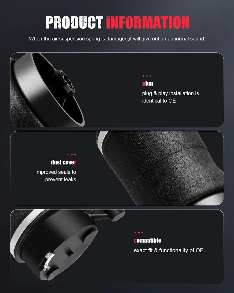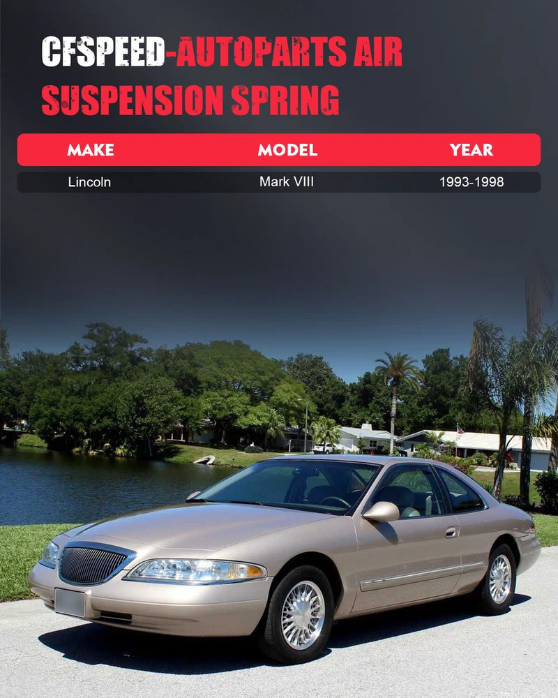 *OEM Part Number: 3U2Z5580FA *Item Specifications: Key Words: Rear Pair Air Suspension Spring Bags For Lincoln Mark VIII 1993-1998 Package Includes: Pair for Rear Left & Right Air Suspension Spring Bags Notes: Please double confim the compatibility as well as the OEM number before purchasing. Instruction is not included. Professional installation is recommended. *Compatibility Chart: 1, You can distinguish specific model of an automobile by VIN(Vehicle Identification Number). 2, VIN(Vehicle Identification Number) consists of total 17 English letters and arabic digits. Rear Pair Air Suspension Air Springs For Lincoln Mark Series Mark VIII 1993-1998 *OEM Part Number: 3U2Z5580FA *Item Specifications: Key Words: Rear Pair Air Suspension Spring Bags For Lincoln Mark VIII 1993-1998 Package Includes: Pair for Rear Left & Right Air Suspension Spring Bags Notes : Please double confim the compatibility as well as the OEM number before purchasing. Instruction is not included. Professional installation is recommended. *Compatibility Chart: 1, You can distinguish specific model of an automobile by VIN(Vehicle Identification Number). 2, VIN(Vehicle Identification Number) consists of total 17 English letters and arabic digits. 3, VIN does not include the letters I (i), O (o), and Q (q) (to avoid confusion with numerals 1 and 0). Lincoln Mark VIII Anniversary Sedan 2-Door 4.6L 1996 Base Coupe 2-Door 4.6L 1995-1996 Base Sedan 2-Door 4.6L 1993-1998 LSC Sedan 2-Door 4.6L 1995-1998 * Generation & Evolution: Lincoln Mark Series First generation (Mark II,1956-1957) Successor (Mark III, Mark IV, Mark V;1958-1960) Second generation (Mark III,1969-1971) Third generation (Mark IV,1972-1976) Fourth generation (Mark V,1977-1979) Fifth generation (Mark VI,1980-1983) Sixth generation (Mark VII,1984-1992) Seventh generation (Mark VIII,1993-1998) *Platform Drive Layout : Front Engine-Rear Wheel Drive Layout *Installation Guideline: 1.Replace the O-rings on the air spring solenoid and lubricate. 2.Install solenoid, and replace solenoid retaining clip. 3.Replace the top air spring retaining clip. 4.Insert the air spring's upper cap into the two holes in chassis and twist to lock back into place. The rear air spring will fit in either RH or LH. 5.Insert the plastic locking fingers of lower piston into lower suspension arm. Make sure they are locked in place. You need to visually verify that all of the four plastic fingers are correctly retained. 6.Replace the tire and wheel assembly. Tighten wheel hub bolt nuts to manufacture's specifications. Remove all safety stands and lower vehicle. 7.Partially lower the rear suspension. Do not lower to the bump stops. 8.Turn the air suspension switch to the on position. 9.Start the engine and let the air suspension rise to normal trim height. * Removal Warning & Notice: Vent all air pressure from the air suspension system prior to disconnecting or removing any air suspension components. It is dangerous to remove air suspension components while under pressure. Failure to follow this instruction may result in serious personal injury. Any air spring which is unfolded must be refolded prior to being installed in a vehicle. Refer to the procedure. An incorrectly folded air spring could rupture, altering the handling characteristics of the vehicle. If a vehicle has been driven with an incorrectly folded air spring, a new air spring must be installed. Failure to follow these instructions may result in serious injury to vehicle occupant(s). Failure to observe the following instructions may result in a sudden failure of the air spring or suspension system. Any rear spring which is unfolded must be refolded prior to being installed in a vehicle. The air spring refolding procedure should only be used for an air spring which has never supported the vehicle's weight while in the incorrectly folded position. Incorrectly folded air springs found on vehicles during pre-delivery inspection or after use must be installed new. Do not attempt to inflate any air spring which has been collapsed while uninflated from the rebound hanging position to the jounce stop. When installing a new air spring, care must be taken not to apply a load to the suspension until springs have been inflated using the air spring fill procedure. After inflating an air spring in the hanging position, it must be inspected for correct shape. 1.NOTE: The vehicle must be positioned on a suitable lifting device prior to deflating the air suspension system. With the vehicle in NEUTRAL, position on a hoist until the wheel and tire assemblies are slightly above the ground. 2.Using the scan tool, vent the air springs. 3.Remove the air spring retainer. 4.Detach the air spring from the rear axle. 5.Remove the air spring in the following sequence. 1.Disconnect the air spring solenoid electrical connector. 2.Compress the quick connect locking ring and pull out the air tube. 3.Remove the air spring. * Frequently Asked Questions : How to prevent the damage of air springs/How to extend the service life of air springs/struts etc.? An air strut with separable air springs If your vehicle offers a separable air suspension (Audi Allroad A6 C5, Mercedes-Benz W164, BMW X5, etc.), you should regularly (about once a week) lift the car to the maximum position, and remove dirt with a high-pressure cleaner (keep the cleaner at a distance to the air spring about 30 cm/12 inches, otherwise water pressure can damage the air spring). The highest position may vary depending on your model and regulation options. Therefore, please test this by trying the different modes available to you (Sport, comfort, dynamic, off-road) and choose the one that sets your vehicle to the highest position. The dirt will most likely be found under the fold of the pneumatic chambers. If you find a frozen layer of bitumen on the piston guide (the part of a strut on which the air spring is installed), it is recommended to clean it as well. Whenever possible, avoid riding on fresh asphal