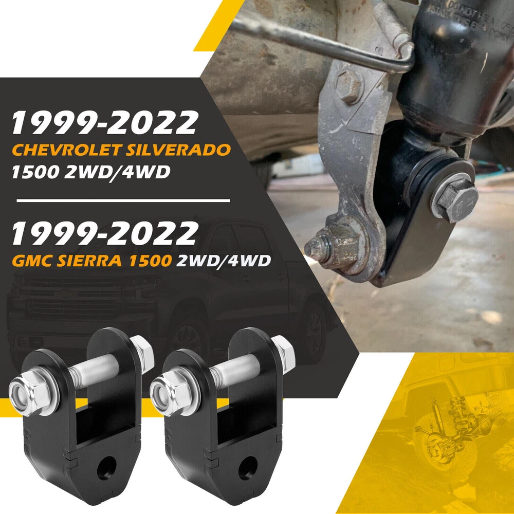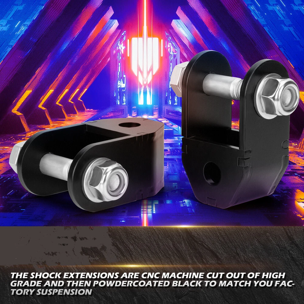 Compatiable With 1999-2022 Chevrolet Silverado 1500 2WD/4WD 1999-2022 GMC Sierra 1500 2WD/4WD 2007-2021 GMC Yukon 6-Lug 2WD 4WD 2007-2021 GMC Yukon XL 6-Lug 2WD 4WD 2007-2013 Chevy Avalanche 6-Lug 2WD 4WD 2007-2021 Chevy Suburban 1500 6-Lug 2WD 4WD 2007-2021 Chevy Tahoe 6-Lug 2WD 4WD 2007-2021 Cadillac Escalade 2WD 4WD Not fit air suspension Not fit auto Level system Our shock extensions are ideal for when you install a rear lift block and your shocks are too short. These extensions allow you to retain use of the factory shocks or factory length shocks, we provide the high quality set constructed with carbon steel, which can greatly improve the using lift and the black powder coated process makes it rust and corrision resistant. On Oct 24, 2024 at 12:27:35 PDT, seller added the following information: