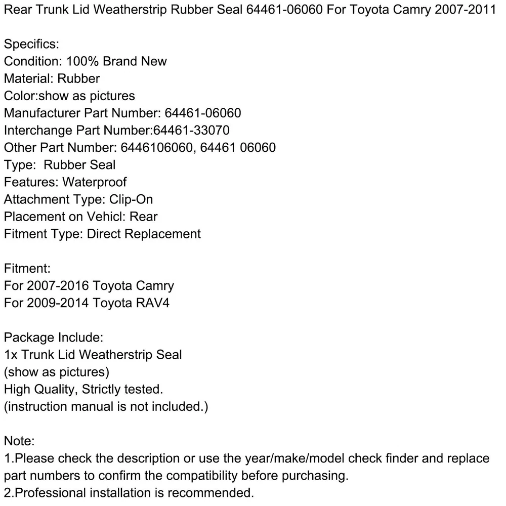 Rear Trunk Lid Weatherstrip Rubber Seal 64461-06060 For Toyota Camry 2007-2011