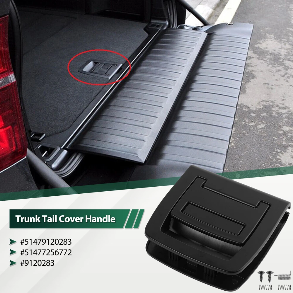 Color: Black Type: Trunk Tail Cover Handle Weight: 190 g Interchange Part Number: 51477256772, 9120283 Product Name: Trunk Mat Handle gtin13: Does not apply Brand: Unbranded Fitment Type: Direct Replacement Material: Plastic UPC: Does not apply Package Includes: 1x Trunk Mat Handle Finish: Matte Manufacturer Part Number: 108X11791EBUS Features: Durable, Easy Clean, Easy Installation Fit for: for BMW E70 X5 E71 X6 2006-2013 Placement on Vehicle: Rear Trunk OE/OEM Part Number: 51479120283