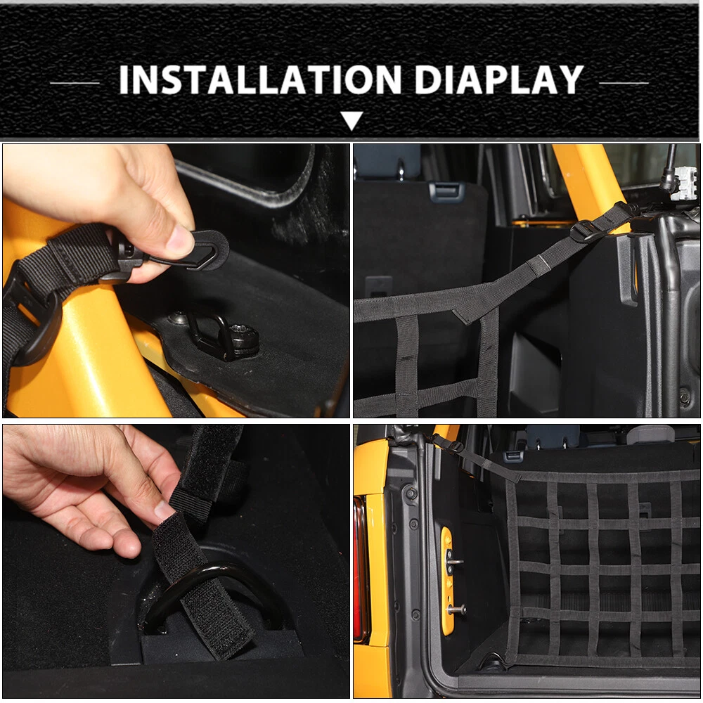 Rear Trunk Organizer Mesh Car Cargo Protect Net Kit for Ford Bronco 2021+ 4 Door
