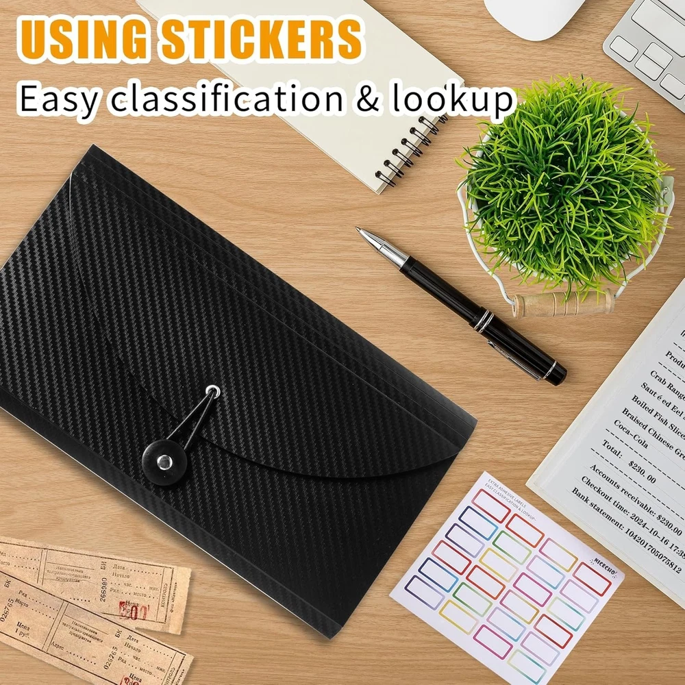 Receipt Coupon Organizer, 13 Pockets Small Accordion File Organizer with Labels for Receipt Cards, Bill Business, Coupons Storage, 10.2X 5.1 Inches Product Description πŸ“‚ 13-Pocket Accordion File Folder – High Capacity Organizer πŸ“ High Capacity Storage Measures 10.2 Γ— 5.1 inches and features 13 individual pockets, holding up to 350 sheets or coupons. Perfect for organizing and quickly locating important documents. πŸ›‘οΈ High-Quality Material Made from premium, eco-friendly PP material that is acid-free, PVC-free, and archival-safe. Waterproof and moisture-resistant to keep documents protected from damage, bending, or deformation. 🌈 Rainbow Color Design Updated with bright, colorful inner pages for improved visibility and organization. Includes small color labels to help categorize files and find what you need at a glance. πŸ”’ Upgraded Elastic Buckle Closure Features an improved elastic string & button closure for easy opening and secure closing. Keeps paperwork neatly in place while making daily use more comfortable and convenient. 🏠 Multi-Purpose Use Ideal for storing invoices, papers, cards, receipts, coupons, and documents. Perfect for home, office, school, or travel. Stylish and simple design also makes a great gift for friends and family 🎁