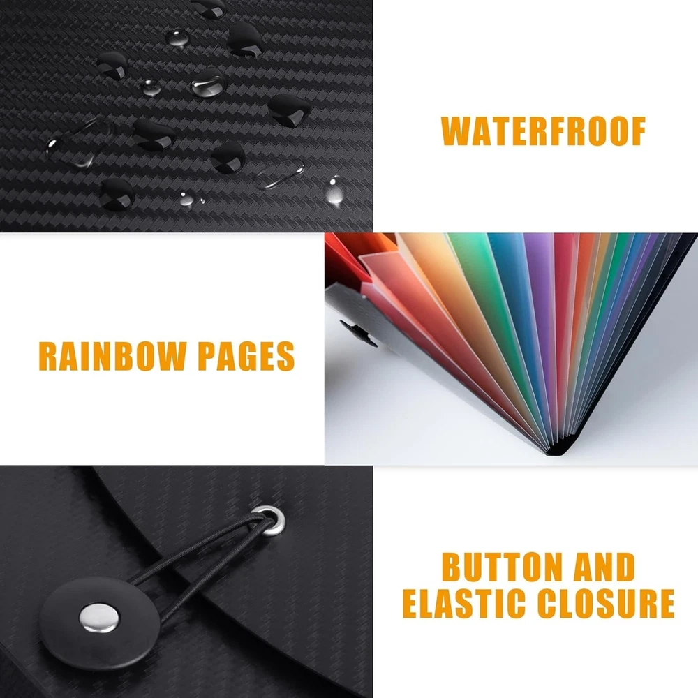 BRAND NEW 【HIGH CAPACITY】Product size is 10.2*5.1inch. 13 individual pockets, maximum 350 sheets of coupon. it is large enough to keep all of your important documents securely, help to classify and find your files effectively 【HIGH QUALITY MATERIAL】Made of premium environmentally friendly PP material, Acid-free, PVC-free, and archival quality for safe storage. Waterproof and moisture-proof material enough to keep your documents in good condition and not easy to break & deform 【RAINBOW COLORED DESIGN】Nicecho 13 Pockets File Folder is updated with nice colored inner pages for better visual sense. Small colored labels can give your files a convenient classification, so that you can quickly find the paper you need 【UNIQUE ELASTIC BUCKLE】We've upgraded the elastic string & button closure from the previous folder organizer,making it easier for users to open and close. It makes your work more relaxed and pleasant, perfect for all people to store all of their loose paperwork 【MULTIFUNCTIONAL APPLICATION】Our accordion folders can store invoices, paper, cards, receipt, coupon and other documents. Suitable for home, office, school and travel use. In addition, the stylish and simple design is the best gift for friends and family