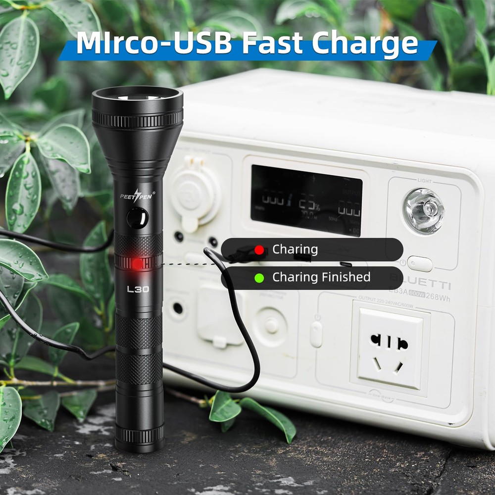 【ULTRA BRIGHT & ENERGY-SAVING】 The L30 high lumens flashlight with its upgraded P8 LED technology, offering 3 times the brightness of standard T6 LED handheld lights and over 10 times that of incandescent bulbs, 1200 high lumens is enough power so you can use it without worrying about the brightness . With a unique condensing design, it delivers an impressive maximum beam distance of 1312FT (400M) – equivalent to 3.5 American football fields! Ideal for any survival kit or emergency situation. 【ADVANCED MODE SETTINGS】L30 rechargeable flashlight flashlight comes with four mode settings: high-low-flash-SOS. All operations are effortlessly managed with a single click. Deep press to turn the flashlight on or off; while on, tap to toggle between high and low modes, and double-tap for flash and SOS modes. High and low modes feature a memory function for quick operation, making it perfect for hiking, camping, tactical, and outdoor activities. Add it to your shopping selection today! 【LONG-LASTING POWER】 That high-lumen flashlight ensures extended runtime. Equipped with rechargeable batteries. It takes just 3 hours to fully charge, providing continuous low light for up to 10 hours and strong light for 60 minutes. Opting for rechargeables not only extends the flashlight’s working time but also offers greater convenience and battery compatibility.It is definitely the first choice of lighting tools for outdoor activities or at work! 【COMPACT & DURABLE】Measuring just 80 inches long, 19.5 inches wide, and weighing a mere 3.8oz, this flashlight is incredibly portable. Its waterproof body boasts an IPX6 rating, withstanding impact, dust, and water (including a 7-foot drop test and 1-hour submersion). Reliably functions even in harsh environments like sandstorms, heavy rain, and snowstorms. Keep this essential tool in your power outage emergency kit and RV supplies, It might be the right choice for your emergency situation! 【THE PPERFECT GIFT】 Searching for the ultimate present? Look no further! Delight your dear ones with this vibrant rechargeable flashlights, perfect for Valentine’s Day, Father’s Day, Halloween, Thanksgiving, or Christmas. Ideal for parents, partners, sons, friends, and anyone who relishes the outdoors. Grab yours today and brighten their life! 【UNMATCHED CUSTOMER CARE】When you purchase Outdoor flashlight products, enjoy 7*24 hours customer service. Should any issue arise, reach out through Amazon’s messaging service immediately. Detail your concerns with photos or videos for faster resolution. Your satisfaction is guaranteed, and responses are prompt—you might even receive unexpected surprises.