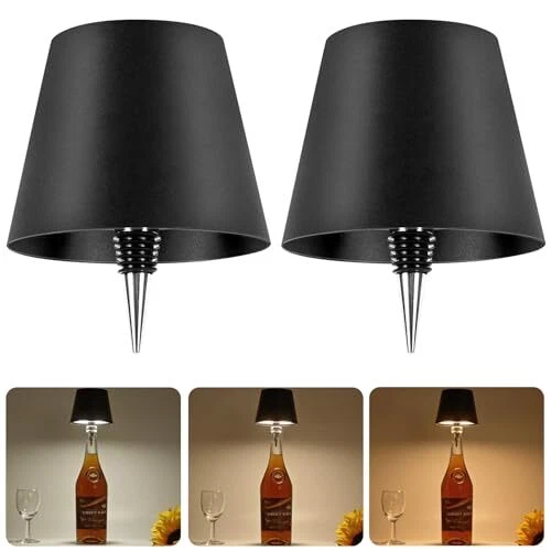 Rechargeable Bottle Lamp 2pcs, LED Wine Bottle Light Ambient 2 Units Black