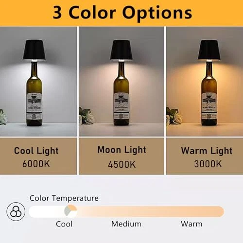 Return Policy Fast Delivery Trusted seller Rechargeable Bottle Lamp 2pcs, LED Wine Bottle Light Ambient Light for Desk Table Bar Decor, Wireless Bottle Lamp Shade for Wine Liquor Bottle, Black Product Description VERSATILE AND STYLISH DECOR: The Wireless Bottle Lamp is a versatile decor piece that can be used on desks, coffee tables, bars, restaurant, or even outdoors during camping trips. Its metallic finish and stylish design add a modern touch to any setting, making it perfect for enhancing the ambiance of your living room, restaurant, or outdoor space CORDLESS CONVENIENCE WITH LONG BATTERY LIFE: This desk lamp is completely wireless and equipped with a 4000mAh rechargeable battery, which can be used continuously for more than 12 hours after a full charge. This cordless feature allows you to put the desk lamp anyw without worrying about finding a nearby outlet, which is convenient and flexible CUSTOMIZABLE LIGHTING OPTIONS: The liquor bottle lamp features touch controls that allow you to easily switch between three different light color options: Warm light, Moon light, and Cool light. Whether you want a cozy, warm atmosp or a cool, bright light for reading, this lamp offers customizable lighting to suit your mood and needs DURABLE AND WATER-RESISTANT DESIGN: Designed for both indoor and outdoor use, this wine bottle light is water-resistant, making it durable enough to withstand outdoor conditions. The metal lamp shade and sturdy construction ensure long-lasting performance, while the water resistance adds an extra layer of protection against the elements UNIQUE BOTTLE MOUNT DESIGN: Dimension: 3.1" x 4.3" x 3.5", This rechargeable LED bottle light is designed to be mounted on wine or liquor bottles, turning them into a unique and personalized light fixture. This creative design element not only repurposes empty bottles but also adds a distinctive and elegant touch to your decor, making it an excellent conversation piece Shipping Returns Payment Shipping Shipping is FREE to all addresses other than APO/PO boxes in the lower 48 states. All our stock ships from US-based warehouses. Shipped via USPS or UPS (depending on location and package weight) Unless stated otherwise, all orders will ship within 24-72 hours of your payment being processed. Check our feedback to see the great reviews of FAST shipping we offer. Returns Seller does not accept returns Payment We currently accept payment via eBay managed payments only. Once payment is cleared, we will dispatch your shipment within 1-3 business days. Please refer to the "Shipping" tab for more information regarding shipping speed to your destination.