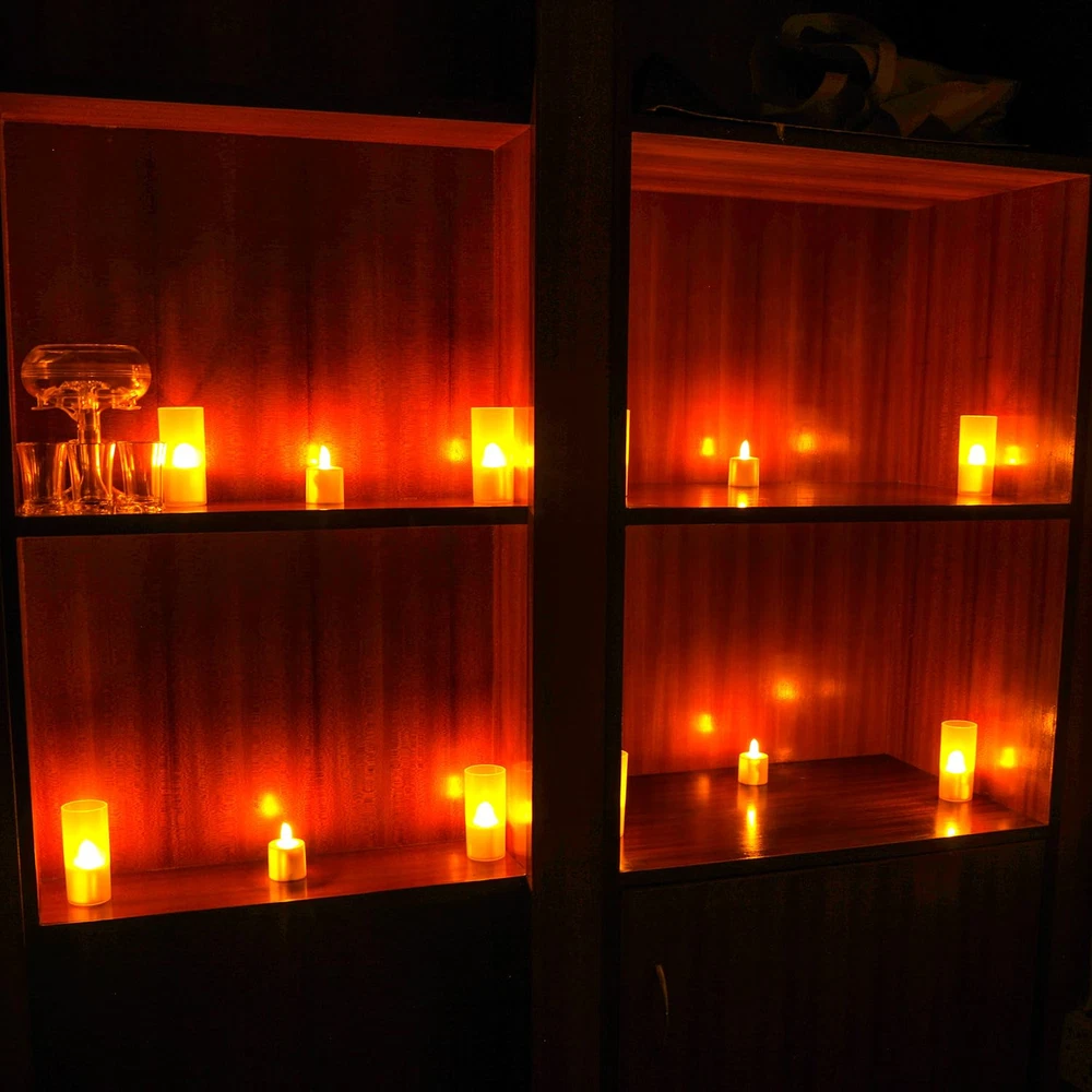 Excellent Performance: Rechargeable candles come with a USB charging cable and remote control, no need any battery candles . 5-7 hours charge can provide about 60 hours use, the indicator light will be green when it is fully charged Complete Set: 12 Flickering Battery Operated Rechargeable Tea Light Candles + 12 Frosted Plastic Candle Holders + 1 usb charging cable + 1 remote control Wide Applications: Perfect for Party Wedding Christmas Birthday's decorations Bedroom. Best Christmas gifts for your families or friends. Ambient home and Reception LED Lights etc Flameless Candles Warm & Romantic: Flameless flickering rechargeable warm white light candles are made of plastic which gives them the appearances of regular warm white flame candles Easily turned on / off via switch on the bottom of each individual light, please turn off the bottom switch before charging