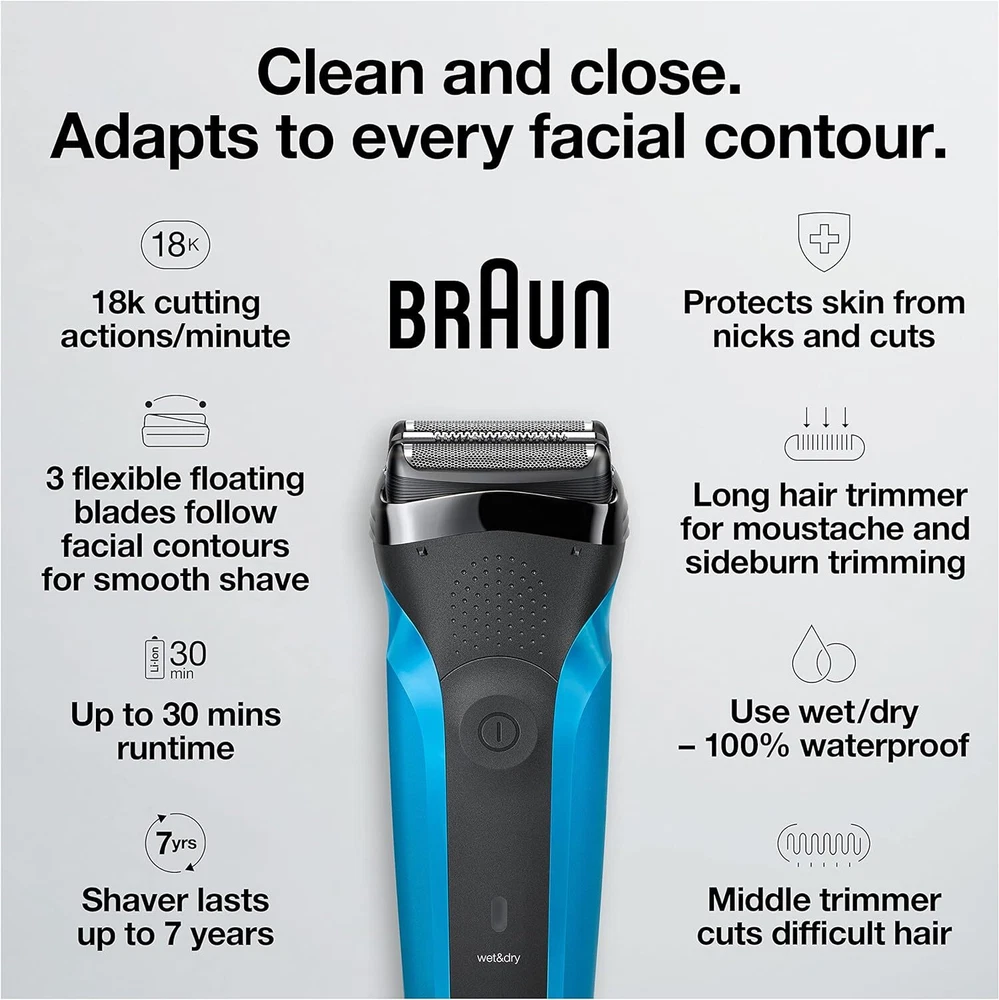 Product Description Electric Razor for Men, Series 3 310s Electric Foil Shaver, Rechargeable, Wet & Dry 3 pressure-sensitive shaving elements for efficiency and skin comfort Rechargeable long-life NiMH batteries Wet&Dry shaver for use with water, foam or gel Designed and engineered in Germany by Durable cordless electric shaver, waterproof to -5 meters About Us We are a reputable seller with many years of experience selling on eBay. Our goal is to provide high-quality products and excellent customer service. Shipping Items will be shipped within 1-3 business days when we received payment. (Orders are not processed on weekends & holidays) Tracking information will be sent once item is shipped. Delivery time depends on destination and other factors Item is shipped to ebay address. Leaving correct address can minimize delay. For international shipping and shipping to Guam, Hawaii and Alaska, Please contact us before placing the order. International buyers please note: Import duties, taxes and charges are not included in the item price or shipping charges. These charges are buyer’s responsibility. We will try our best to reduce the risk of the custom duties. Local pick-up is unavailable at the moment. Contact Us We reply any email messages within 1 business / working days(off-duty at weekend). If you do not get a response from us, then please check your junk or spam mailbox. Our Business hours: Mon-Fri 9:00-18:00, UTC/GMT +8 hours. Please contact us either by clicking "contact seller" in the "purchase history" section or simply click "ask a question" at the bottom of this page. If you are unsatisfied with our item or service, please contact us before leaving any feedback. We are committed to resolve all issues in a friendly and satisfactory manner.