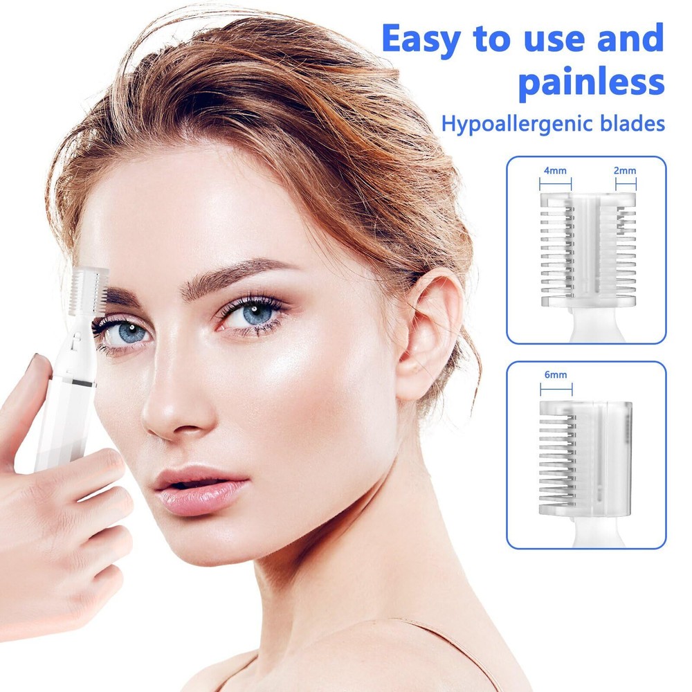 Facial Hair Remover and Eyebrow Trimmer, Rechargeable Hair Removal Women's Electric Shaver Razor for Peach Fuzz Chin Cheek Upper Lip Multifunctional Eyebrow trimmer- This electric eyebrow razor is suited to eyebrows, armpit, lips,ears, peach fuzz, mustache, legs. This facial hair trimmer comes with a precision grooming comb attachment. So you can expertly trim and shape your eyebrows Safety for All Skin Type -- The long-lasting blade is hypoallergenic, superbly gentle on your skin. Eyebrow trimmer is perfect shave close to your skin without causing any pulls, nicks, redness or irritation.Our painless eyebrow razor works for men and women. Rechargeble with LED Light - Updated hair trimmer with LED light makes it clearer to see tiny hairs. Even in the dark environment, electric eyebrow trimmer can accurately trim excess hair. And the convenient USB charging can be use for long time,no more buying AA batteries. Easy to Use and Clean- The exquisite eyebrow trimmer all operations with one button ,give back your confindent looking in minutes. The electric eyebrow trimmer has 3 indicator lights for remind you the charging time.Remover the blade to clean . Portable and Perfect Gift - Stylish and compact with a design that shows a lady's modernity and style, the eyebrow trimmer is the perfect gift for your friends and parents at Christmas, featuring a small portable size. You can easily carry the eyebrow trimmer in your beauty bag, purse or wallet.
