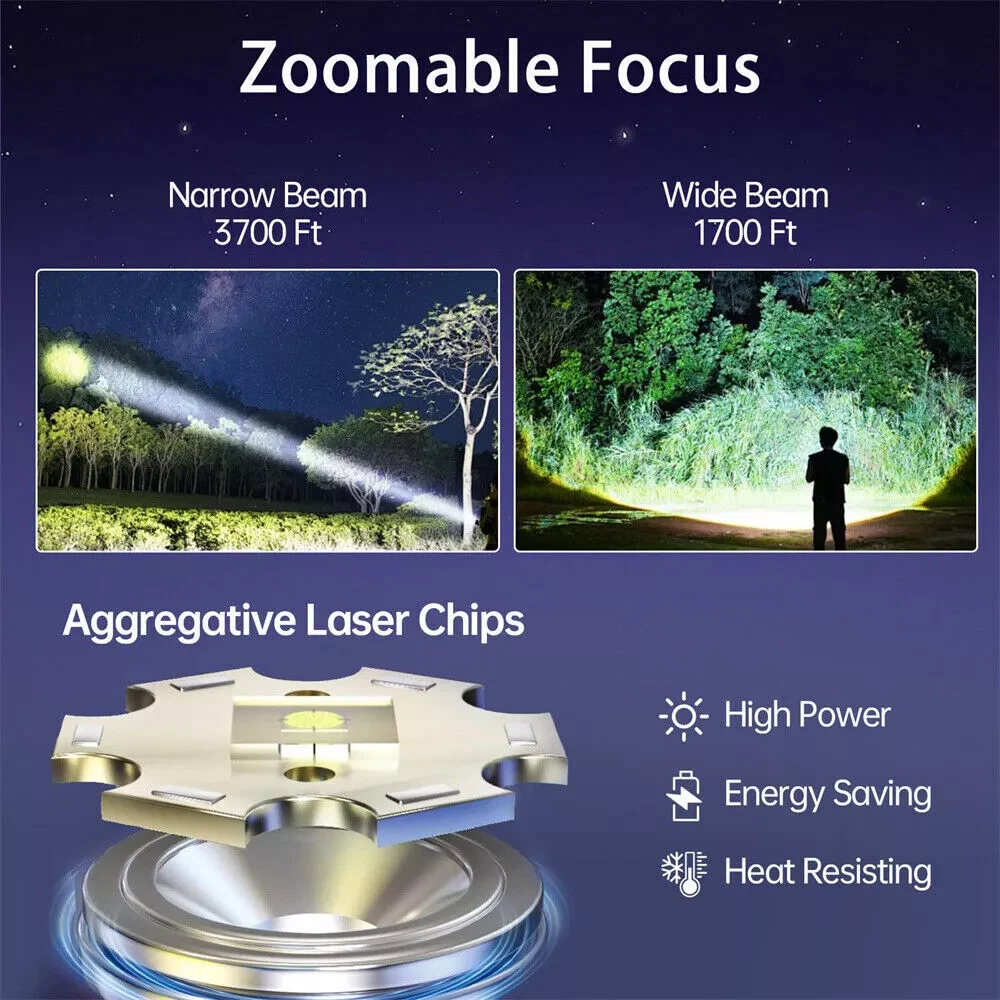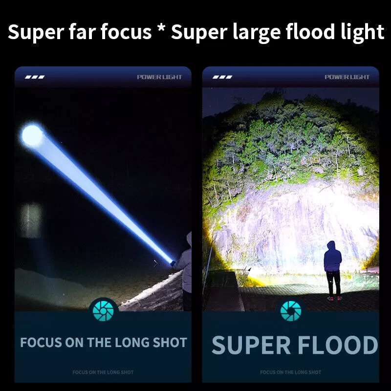 Features: Batteries Included, Handheld, Rechargeable, Waterproof, With Wrist Strap, Adjustable Focus, 5 Modes Light, Lightweight, High Power Material: Plastic, Alloy Steel IP Rating: IPX6 Lumens: 99000000LM Type: Flashlight Package Included:: 2 x Flashlights, 1 x USB Cables gtin13: Does not apply Brand: Unbranded Operating Range: 1700~3700 FT Power Source: Battery Charging Method: Type-C Charging Color: Black Number of Lights: 2 Number of Batteries: 1 Battery Technology: 1-8-6-5-0 Operating Time: 5-10 Hours Lighting Technology: LED UPC: Does not apply