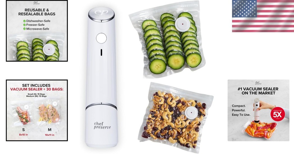 Rechargeable Food Vacuum Sealer - Seal Freshness 5x Longer with BPA-Free Bags ‹ › ‹ › ‹ › ‹ › ‹ › ‹ › ‹ › ‹ › ‹ › Rechargeable Food Vacuum Sealer - Seal Freshness 5x Longer with BPA-Free Bags Key Features: Reduce Waste and Save Money: keeps FOOD FRESH 5 TIMES LONGER than non-vacuum storage methods. Say goodbye to the worry of spoilage! Powerful, Quick & Easy to Use: With just a press of a button, this device vacuum seals a bag in only 5 seconds and automatically shuts off when done. Reusable & Resealable Bags: Comes with dishwasher, freezer, refrigerator, and microwave-safe bags that are BPA-free, odor-free, leak-proof, and preserve flavor, nutrition, and texture. Suitable for All Types of Food: Perfect for sealing meat, fish, vegetables, fruits, dry goods, pizza, cooked food, and leftovers – vacuum seal anything with ease! Rechargeable, Portable & Wireless: One battery charge is enough to vacuum seal up to 1000 bags, making it a convenient kitchen companion. No More Bulky Machines: Unlike traditional sealers, is compact, lightweight, and designed to save space in your kitchen. Quality Assurance: We assure your satisfaction with a 60-Day Money-Back Guarantee and a 2-Year Warranty. Why Choose ? Transform your food preservation routine with the Rechargeable Food Vacuum Sealer. Designed for convenience, it seals in freshness and flavor, making your meals last longer and saving you money in the process. No more wasted ingredients and no more bulky machines. With portable functionality, you can enjoy the freedom to seal anytime, anywhere. Make a smart choice for your kitchen. Protect your food, reduce waste, and maintain its integrity with – order yours today! Shipping Free & Fast Shipping - We offer free shipping to most of the USA with a normal delivery time of 3-7 days. However, due to the current situation, additional delivery time (up to 3 weeks) may be required for some items. Alternative Carriers - We may use alternative carriers (e.g. USPS, FedEx, UPS, etc.) to ensure your package arrives safely and on time. Due to the use of multiple carriers, we are unable to provide a tracking number automatically. Handling Time - Orders are processed and shipped within 1-2 business days of receiving cleared payment. Shipping Restrictions - Shipping to Alaska, Hawaii, Puerto Rico, Guam, and other US territories may incur shipping charges or delivery restrictions. Please contact us before ordering, or your order can be refunded/cancelled. State Restrictions - There may be restrictions based on your state of purchase. For example, certain items may not be shipped to California due to state regulations. Contact for Tracking Updates - If you require tracking updates or have any concerns about the delivery of your order, please feel free to contact us, and we will be happy to assist you. Return 30-Day Hassle-Free Returns - We want you to be completely satisfied with your purchase. If you are not, you can return the item within 30 days of receiving it for a full refund or exchange. Easy Return Process - To start a return, simply contact us and we will provide you with a prepaid return shipping label and detailed instructions. Restocking Fee - There are no restocking fees for returns. However, the buyer is responsible for return shipping costs if the return is not due to a seller's error. Refund Processing Time - Refunds will be processed within 5 business days of receiving the returned item in its original condition. Payment We accept all major credit cards, PayPal, and Apple Pay for your convenience. Your payment information is secure and encrypted to ensure a safe and seamless transaction. Please complete your payment within 3 days of purchase to avoid any delays in shipping. Feedback Your feedback is extremely important to us. We strive to provide the best products and customer service possible. If you are satisfied with your purchase, please take a moment to leave us a positive review. If you have any concerns or issues with your order, please contact us before leaving negative feedback. We are committed to resolving any problems and ensuring your satisfaction. Contact Us If you have any questions or concerns, please feel free to reach out to our customer support team. You can contact us through the eBay messaging system. We are available Monday to Friday, 9:00 am to 5:00 pm EST, and we will do our best to respond to your inquiry within 24 hours. Buy it now and enjoy a pleasant shopping experience! UPC: Not Set Unit Quantity: 2.22 lb Features: BPA Free,Dishwasher Safe,Freezer Safe,Fridge Safe,Portable,Rechargeable,Odor-free,Leak-proof,Quick & Easy to Use,Automatic Shut-off,Reusable & Resealable,Microwave Safe Components Included: Bags,30 Bags Brand: Unbranded Model: Vacuum Sealer with Bags Type: Vacuum Sealer Power Source: Battery Color: White Power: 5 W Manufacturer Warranty: Not Set MPN: Not Set Country/Region of Manufacture: Not Set Food Compatibility: Multifunctional Sealing Mode: Seal-Only Item Depth: 3.94 in Item Height: Not Set Material: ABS Plastic Voltage: 5 V Item Width: Not Set Unit Type: lb
