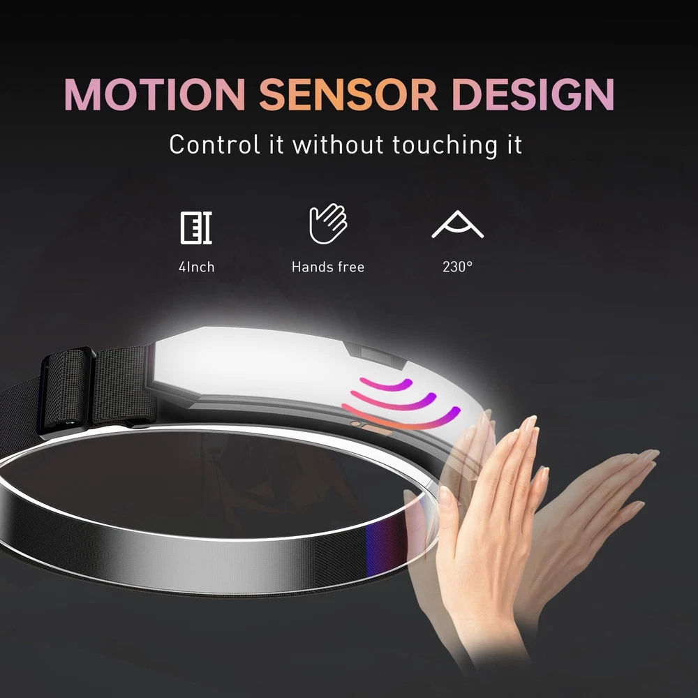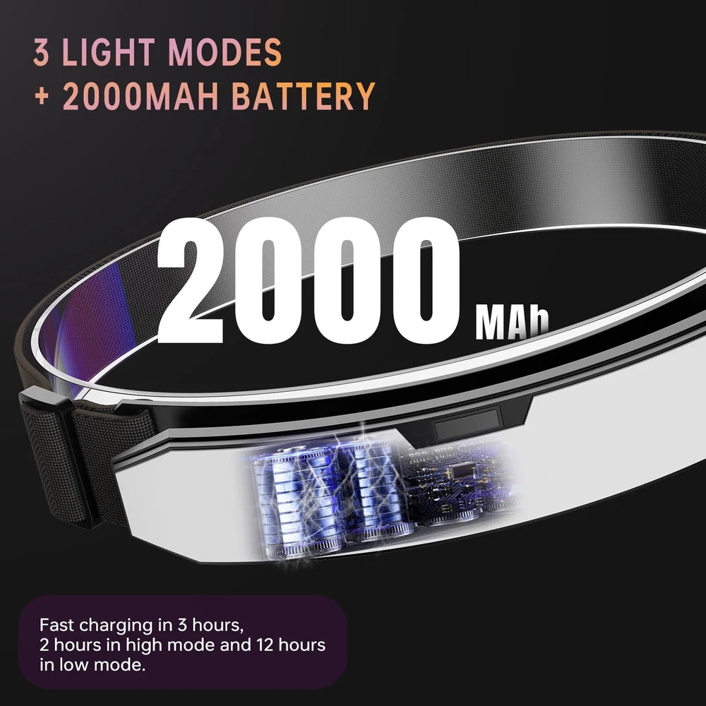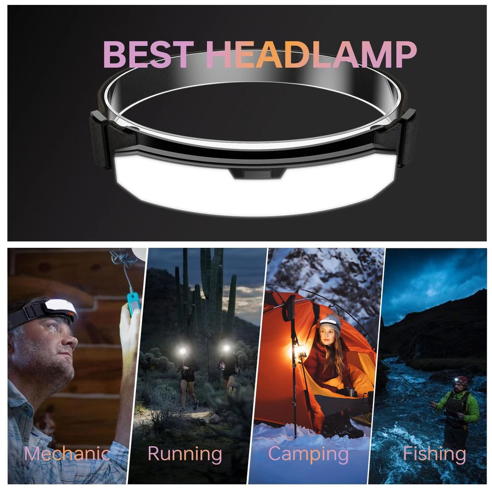 "BORN FOR THE BEST" has always been 's creative philosophy. Over the years we have been focusing on quality, innovation, and user experience, focus makes our products unique. We have full confidence in our products, and we believe you will want to choose headlamps. For the new headlamp, we have made the following changes. 1. Reduce the weight of the headlamp and increase the comfort when wearing; 2. Increase the motion sensor function; 3. Straight line modeling; If you need to use it in bright light mode for a long time, recommends that you purchase 2 for replacement use. STUNNING BRIGHT & ULTRALIGHT HEAD LAMPS LED RECHARGEABLE: With brightest LEDs, COB headlamp can emit up to 1200 lumens and reach over 300 meters. Compared to a traditional head flashlight, it has a better view, meet most of the dark environment needs. This k0209 headlamp weighs only 113g/4oz, It is so lightweight and comfortable that you won't even feel it, even if you wear it all day. MOTION DETECTION TECHNOLOGY & HANDS-FREE WIDE-BEAM LED HEADLAMP: LED Headlamp Camping Accessories is equipped with the latest intelligent sensors. Even if you're wearing gloves, as long as the distance from the device is within 10cm, you can quickly switch the ON/OFF by waving your hand in motion mode. In any mode, press the power switch 2 seconds into the Motion Sensor mode. POWERFUL HEADBAND LIGHT & 3 LIGHT MODES: Built-in 2000mAh rechargeable battery, Fast charging in 3 hours, and will give you up to 2 hours in high-light mode and 12 hours in low-light mode. Great gear for any situation, such as hiking camping running fishing hunting mechanic working. ORIGINALITY 90° ADJUSTABLE FOREHEAD LIGHT: Unlike other ordinary strip COB headlamps, allows to rotate the strip downward up to 90°, you can easily change the angle of the light to the direction you need, expanding the visible range. PROFESSIONAL IPX4 WATERPROOF HEAD LAMP: Fully enclosed design to prevent water mist and rain from entering, enough to deal with all inclement weather. The elastic headband will fit perfectly on your head, breathable and non-slip. RISK-FREE PURCHASE: Don’t worry about missing Amazon’s 30-day return window, will provide 180-day quality assurance and 60-day money back. BUY WITH CONFIDENCE, Add LED headlamp flashlight to your cart now!!!