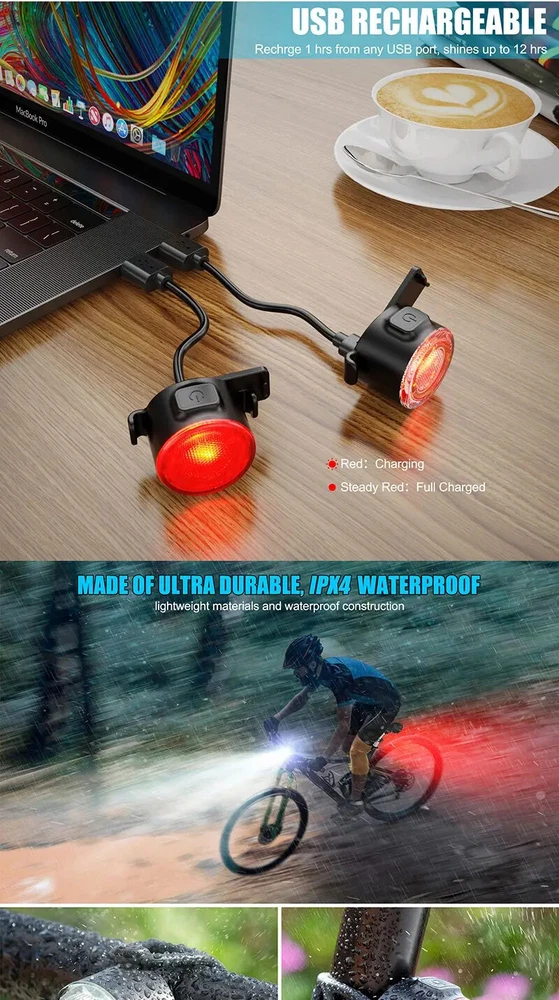 Rechargeable LED Bicycle Light Set for Road & MTB Front Back Safety Headlight