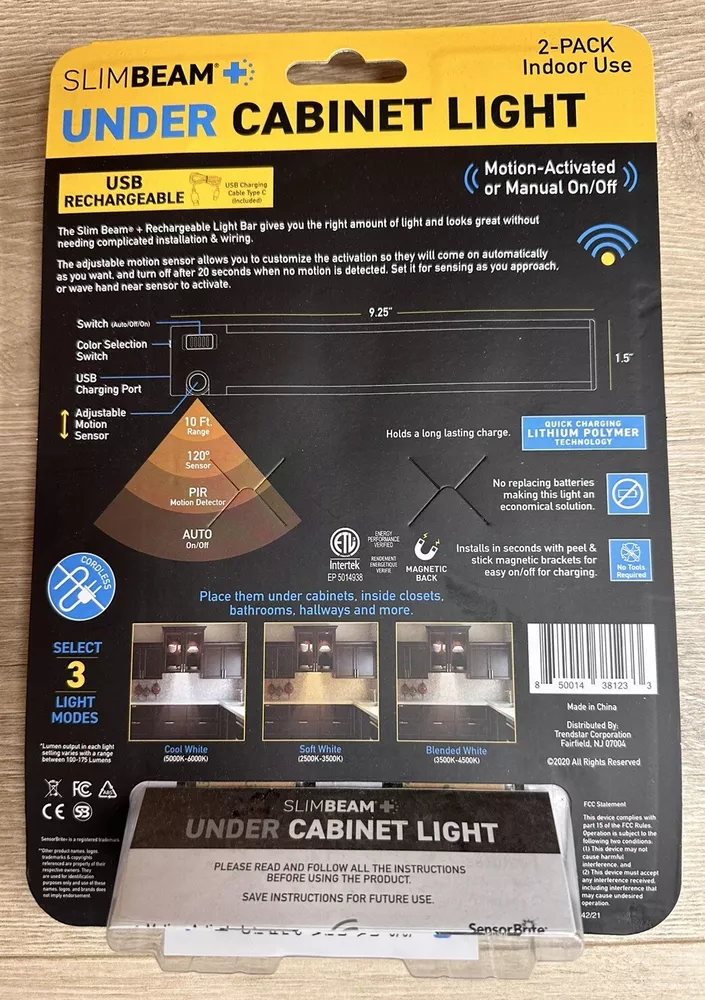 Department: Kids, Teens, Adults Character: N/A Features: Rechargeable Brand: Sensor Brite Color: White Installation Area: Indoor Theme: Home & Garden Finish: Glossy Room: Attic, Bathroom, Bedroom, Cloakroom, Closet, Den, Dining Room, Entryway, Garage, Greenhouse, Home Office/Study, Kitchen, Living Room, Porch, Study, Sunroom, Utility/Laundry Room, Workshop UPC: 850014381233 Type: Night Light Power Source: USB MPN: Slimbeam+ Character Family: N/A Lighting Technology: LED LED String/Strip Type: N/A gtin13: 850014381233 Manufacturer: Sensor Brite Mounting: Under Cabinet Sensor Type: Light Light Color: Warm White